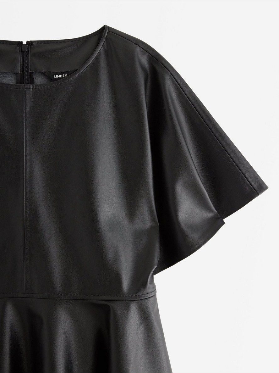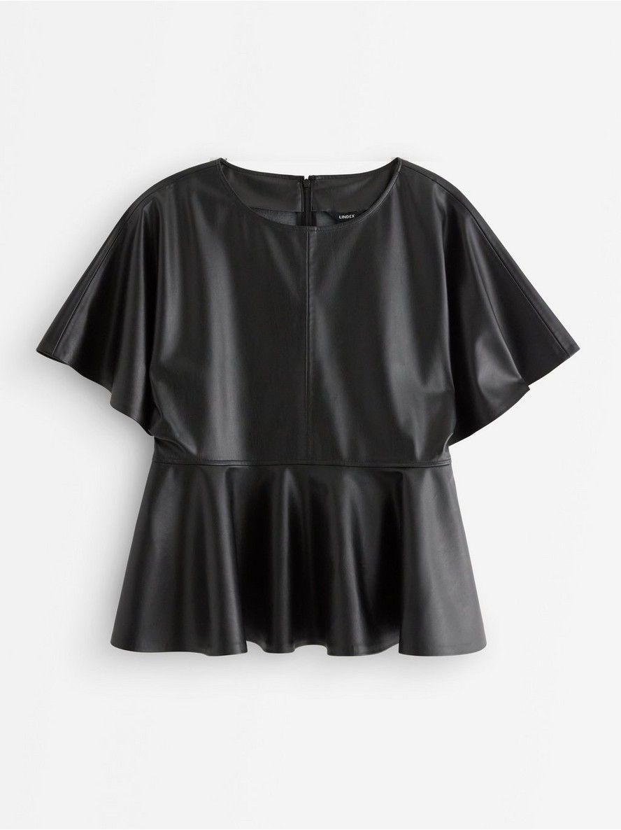 Top kratkih rukava od veštačke kože sa peplum krojem.