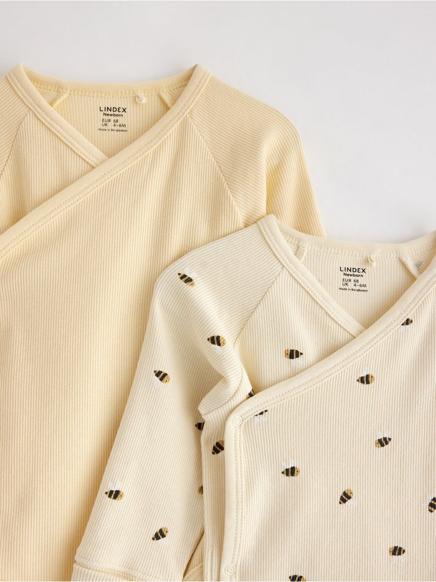 Rebrasti preklopni bodiji od mekог i rastegljivog pamuka sa dugim rukavima. Uz naše pametno rešenje „Extended size“ beba može porasti za jednu veličinu, a da i dalje nosi isti komad odeće.