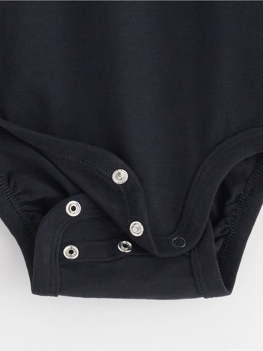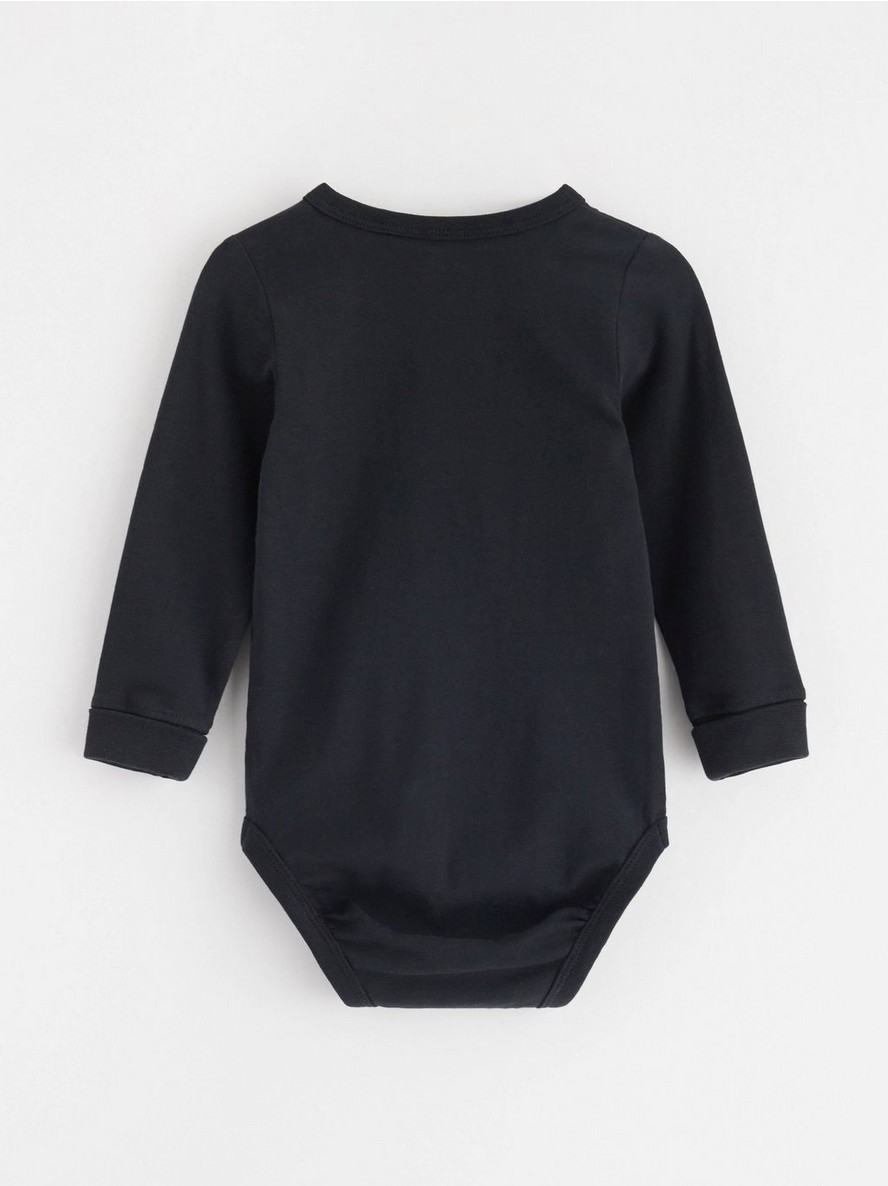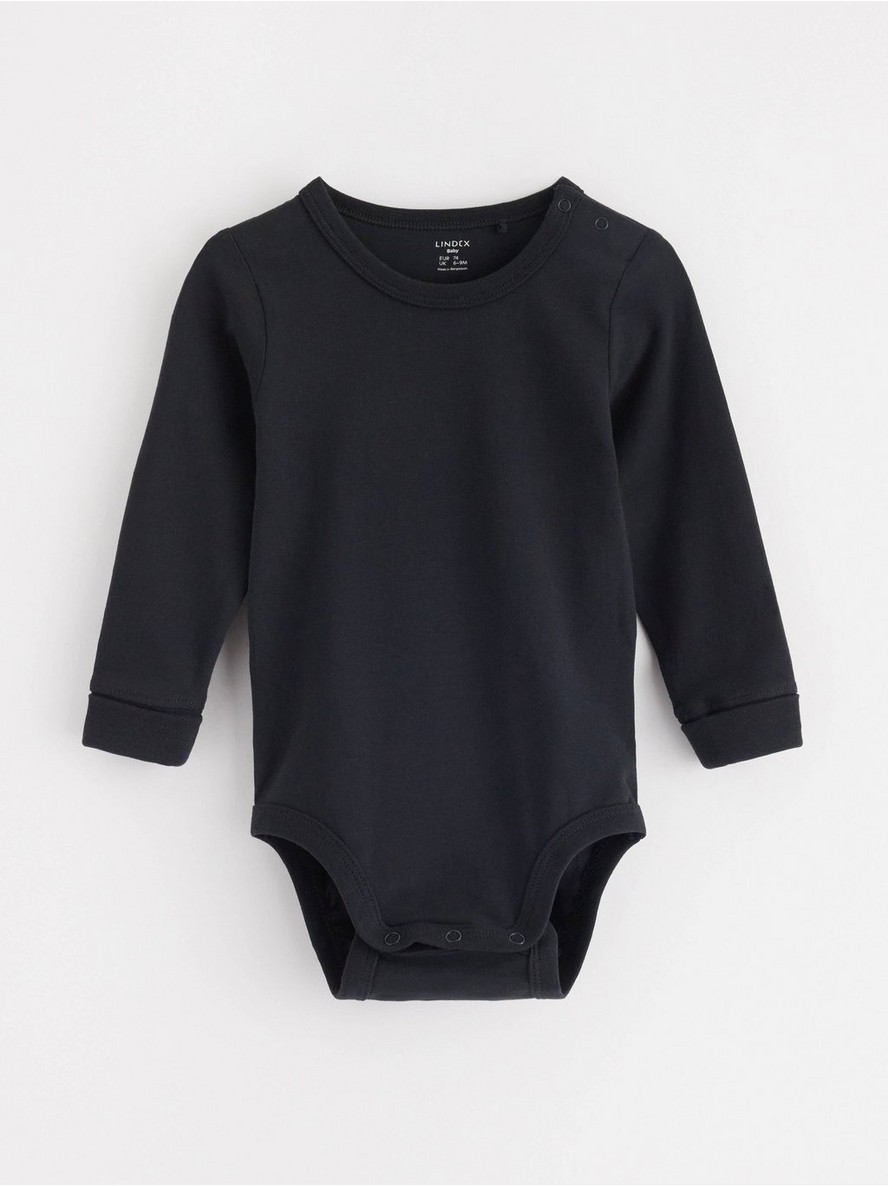 Bodi za bebe od pamučnog džersija sa dugim rukavima i kopčanjem na pritisne dugmiće. Sa našim pametnim rešenjem „Extended size“ beba može porasti za jednu veličinu, a da i dalje nosi isti komad odeće.