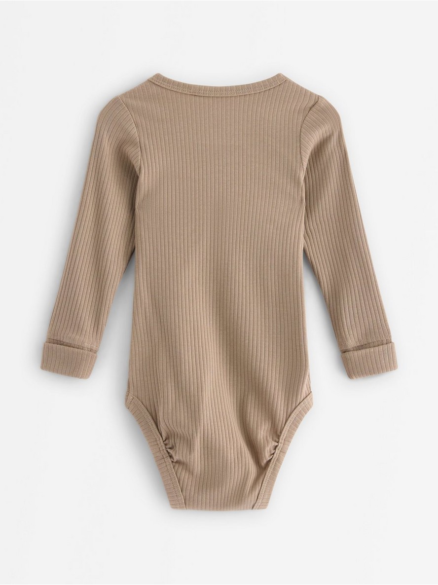 Bodi za bebe s dugim rukavima, od mekog rebrastog pamučnog džerseja. Zahvaljujući našem pametnom rešenju Extended size, beba može porasti za jednu veličinu, a i dalje nositi isti komad.