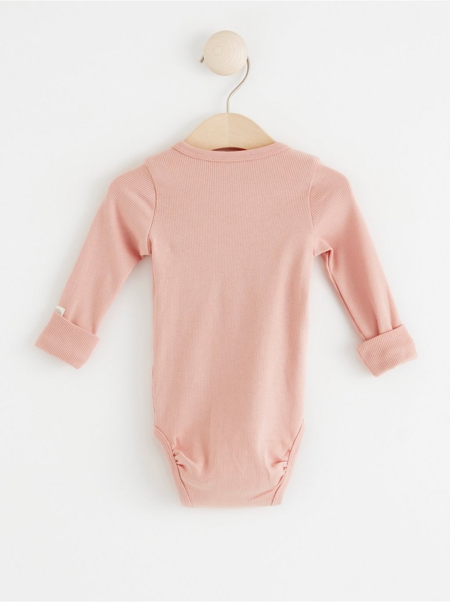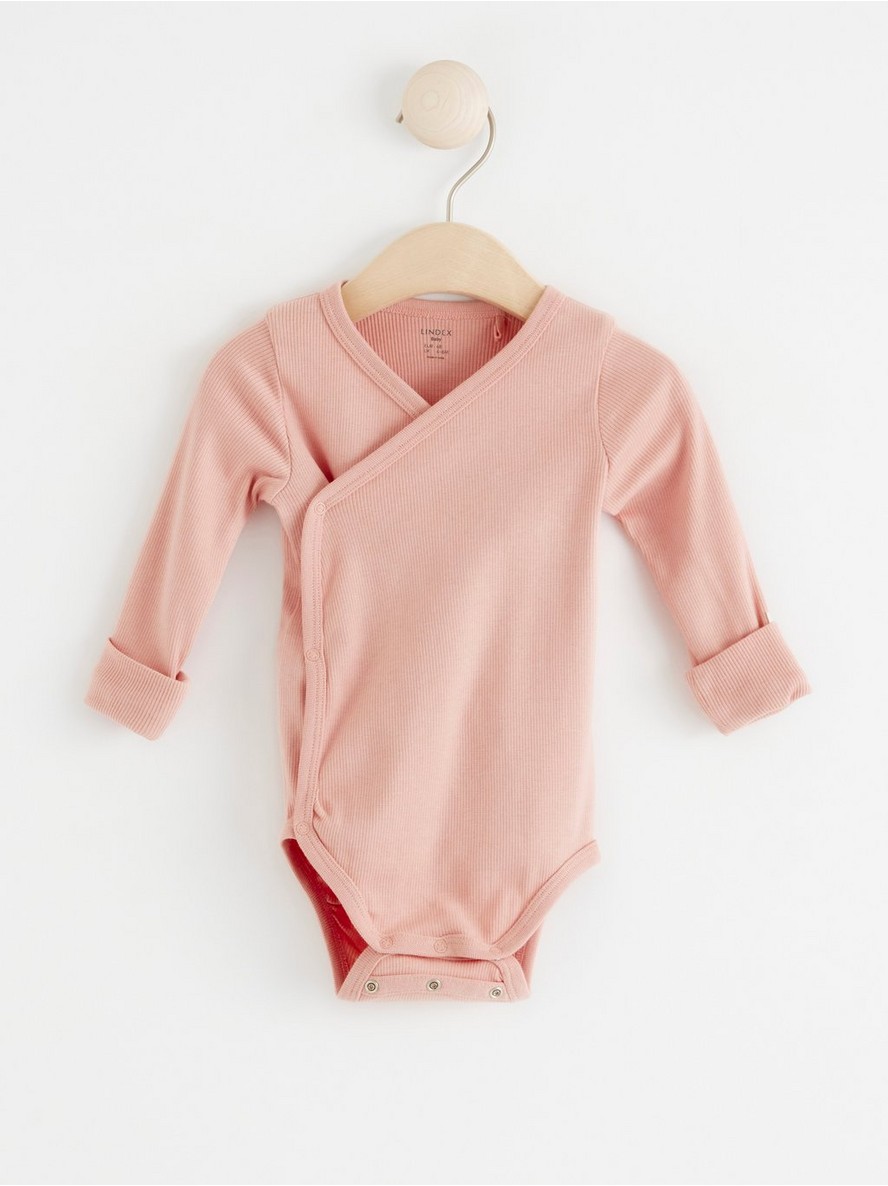Mek i udoban bodi na preklop, sa dugim rukavima i rebrastom teksturom po celoj površini. Zahvaljujući našem pametnom rešenju „Extended size“, koje uključuje preklopive manžete na rukavima i dva reda kopči na preponama, beba može porasti za jednu veličinu, a i dalje nositi isti komad odeće.