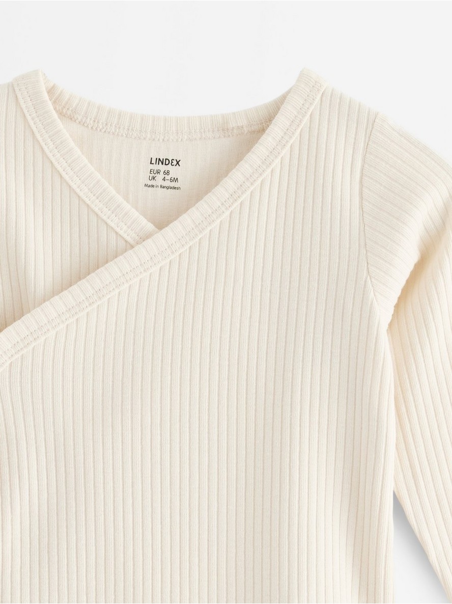 Long-sleeved wrap bodysuit in soft, ribbed cotton jersey. With our smart Extended size solution the baby can grow a size and still keep the same garment.