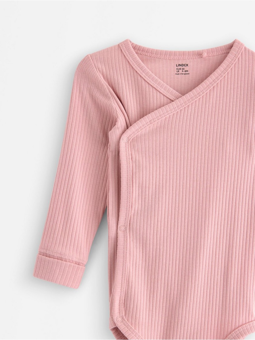 Bodi na preklop sa dugim rukavima, od mekanog rebrastog pamučnog dresa. Zahvaljujući našem pametnom rešenju „Extended size“, beba može porasti za jednu veličinu, a da i dalje nosi isti komad odeće.