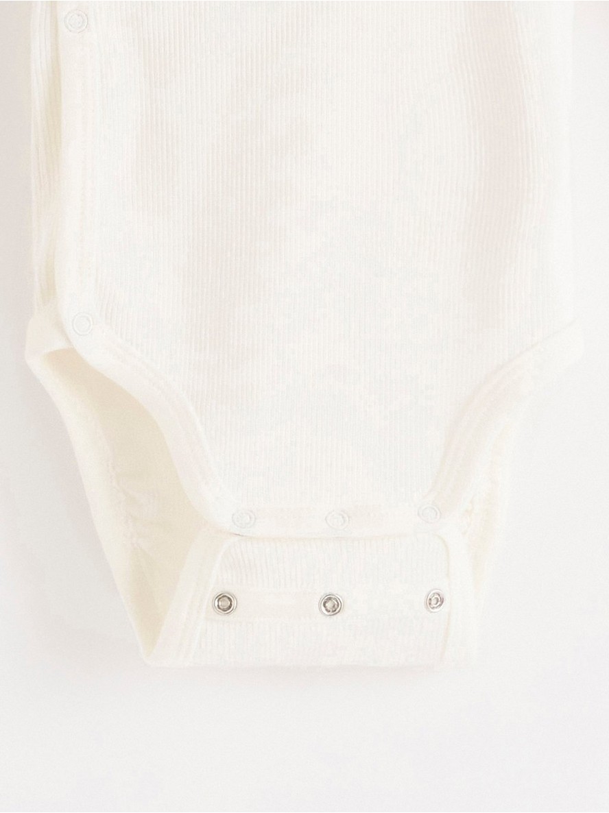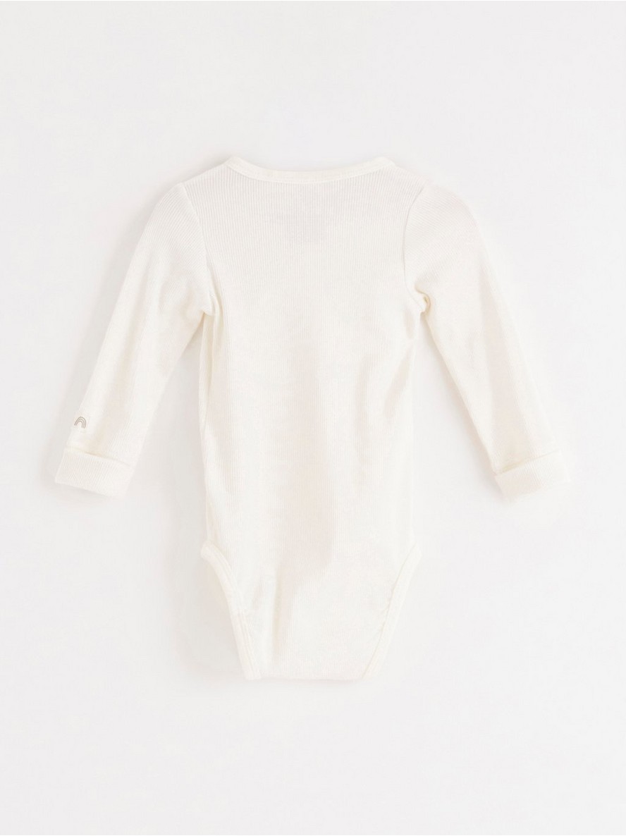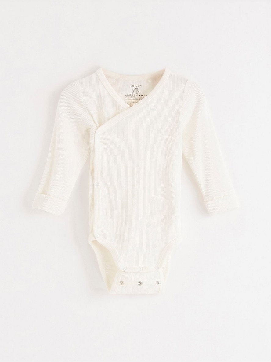 Mekan i udoban bodi na preklop, sa dugim rukavima i rebrastom teksturom po celoj površini. Sa našim pametnim rešenjem za produžene veličine (Extended size), koje obuhvata preklopive manžetne na rukavima i dva reda drukera u preponskom delu, beba može porasti za jednu veličinu i i dalje nositi isti komad odeće.