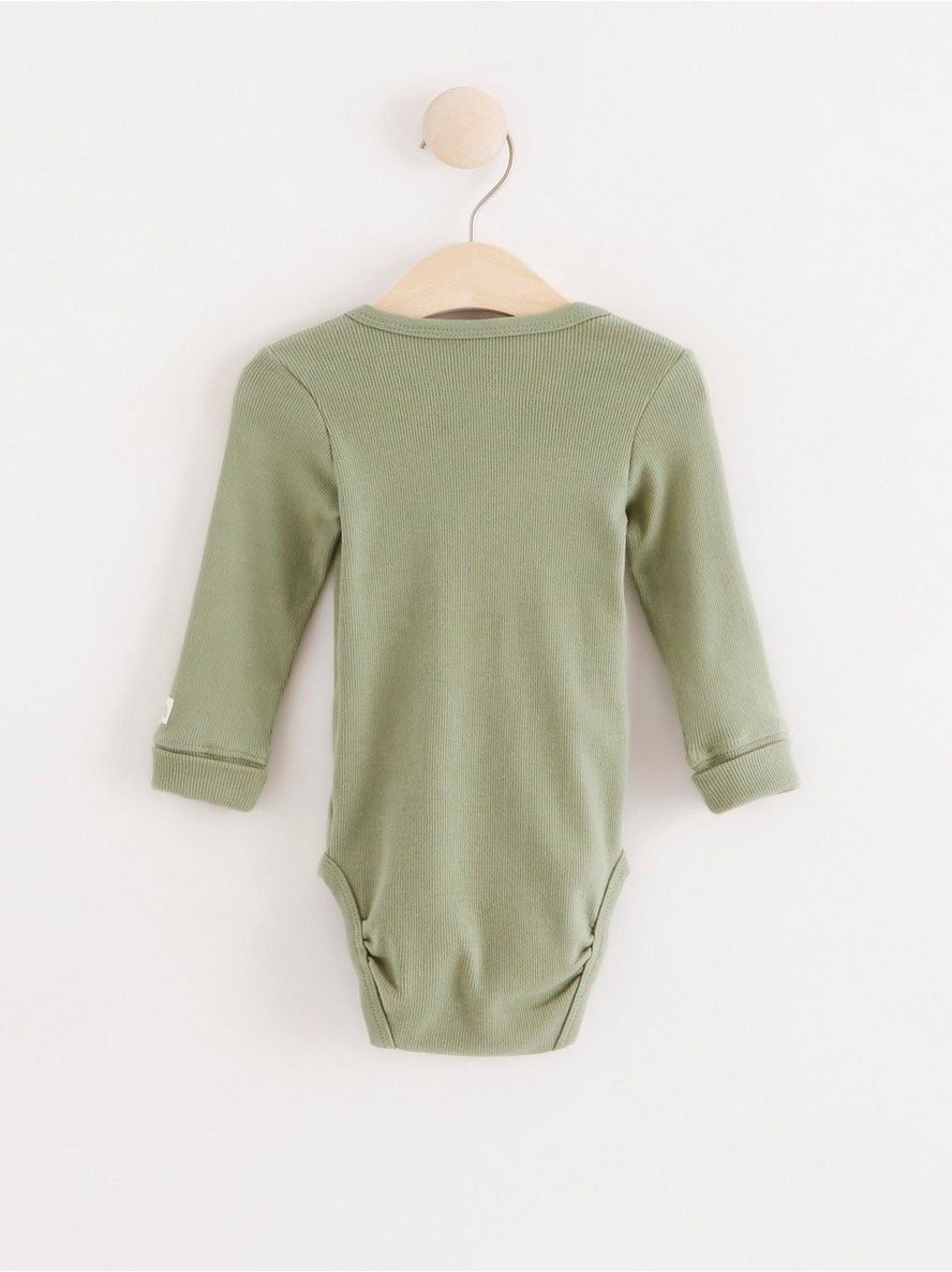 Mekan i udoban bodi u preklopnom kroju, sa dugim rukavima i rebrastom teksturom po celoj površini. Sa našim pametnim rešenjem „Extended size“, koje obuhvata preklopive manžetne na rukavima i dva reda drukera u predelu prepona, beba može porasti za jednu veličinu, a isti komad odeće i dalje će odgovarati.