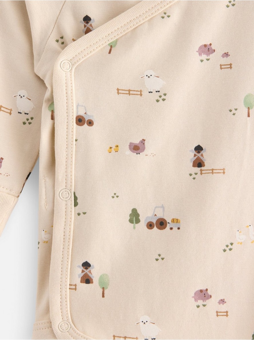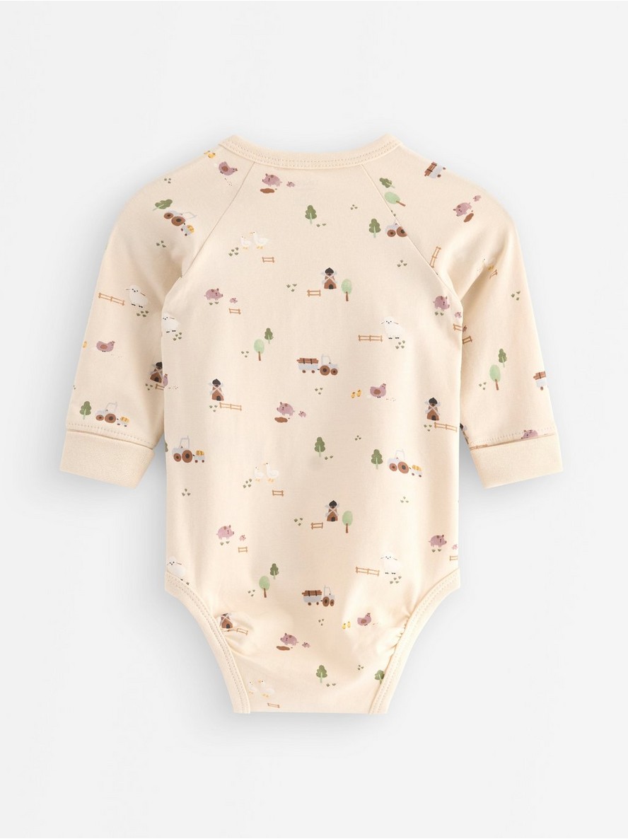 Preklopni bodi sa dugim rukavima od mekanog i rastegljivog pamuka. Uz naše pametno rešenje „Extended size“ beba može porasti za jednu veličinu i dalje nositi isti komad odeće.