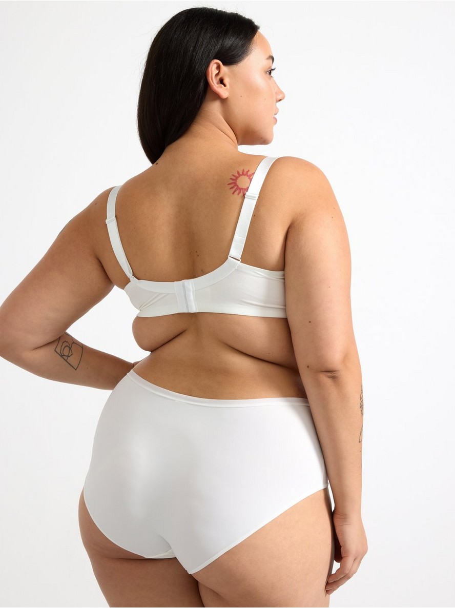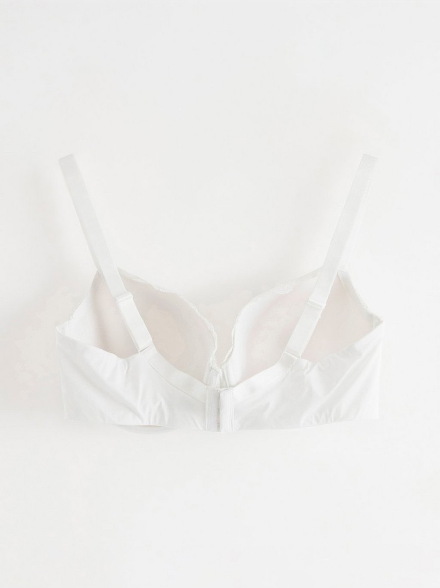 Udoban balconette grudnjak u našem kroju Akleja, sa srednjim stepenom pokrivenosti, oblikovanim korpama sa žicom i tankim punjenjem, i lepom čipkom na prednjem delu.
