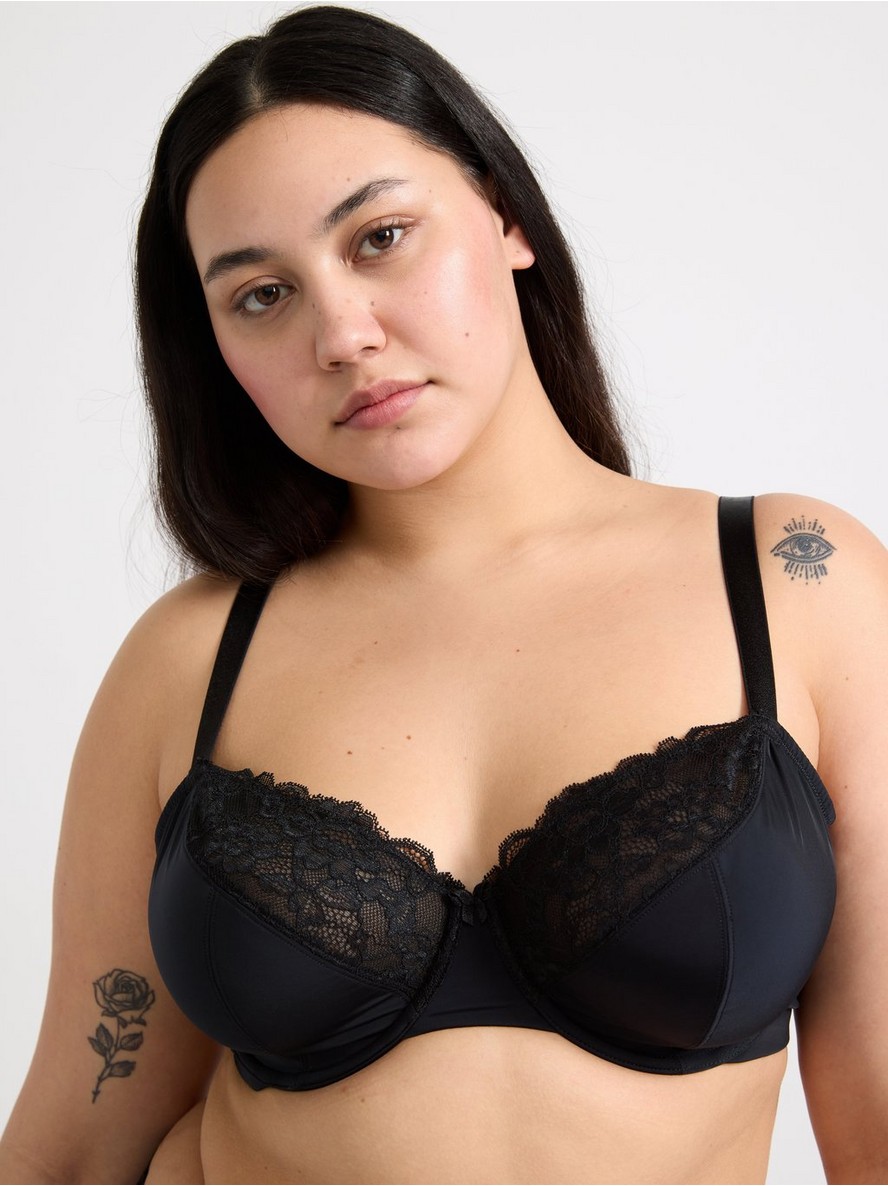 Grudnjak sa žicom bez podstave, sa elegantnom čipkom na gornjoj polovini korpica. Široke naramenice i čvrsta žica pružaju udobnost, podršku i prirodan oblik punijem poprsju.