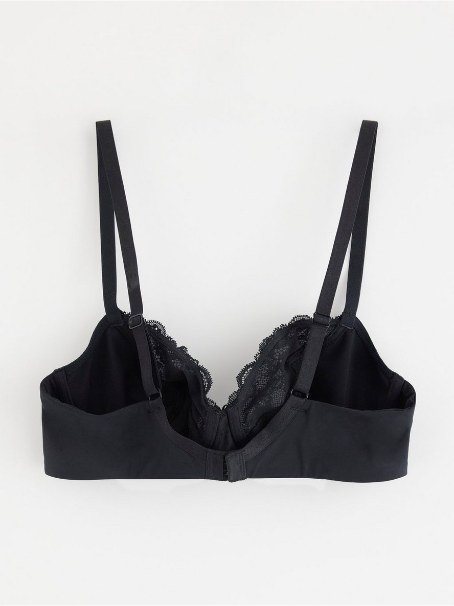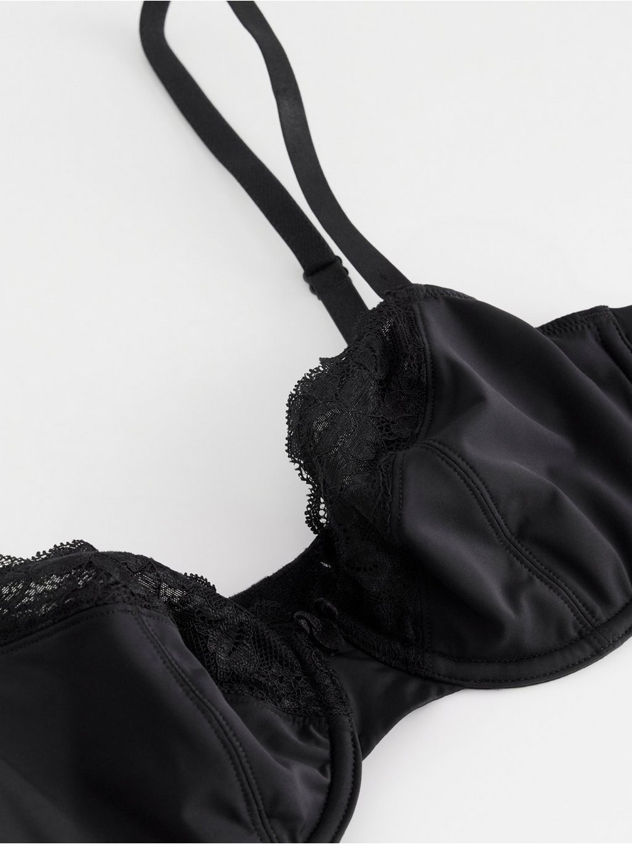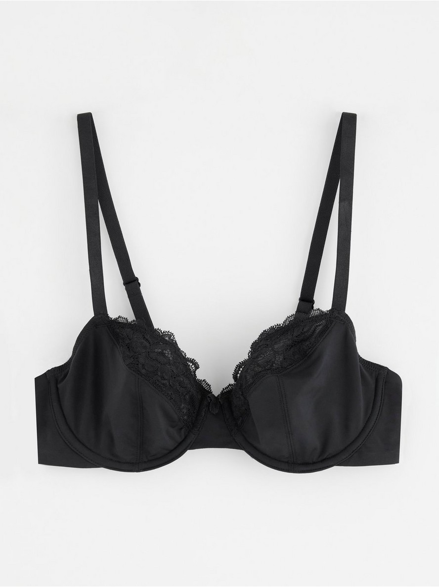Grudnjak sa žicom bez podstave i elegantnom čipkom na gornjoj polovini korpica. Tanke naramenice i čvrsta žica pružaju udobnost, podršku i prirodan oblik za bujnije poprsje.