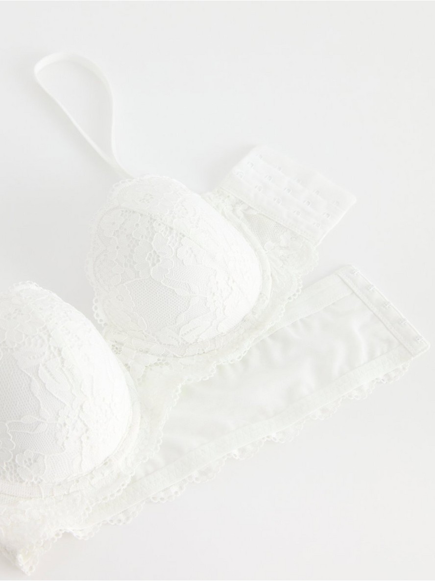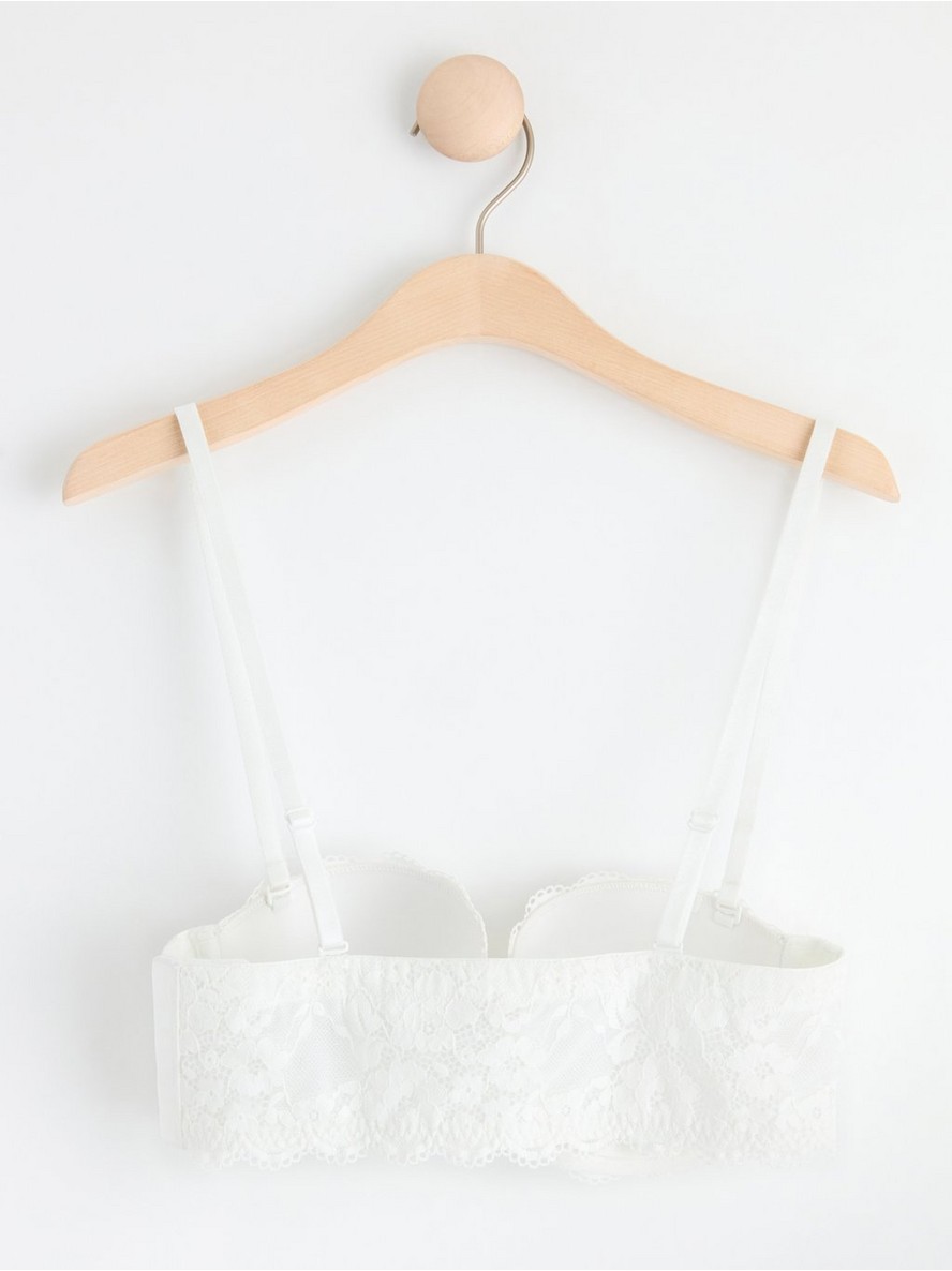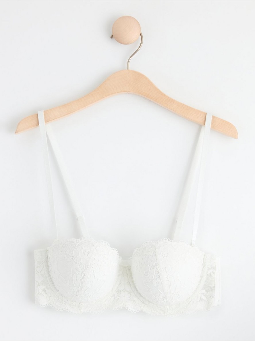 Grudnjak bez naramenica sa tanko podstavljenim oblikovanim korpicama koje nude veće pokrivanje između korpica i podižu i oblikuju poprsje odozdo. Višenamenski sistem sa odvojivim kopčama za naramenice omogućava nošenje naramenica pravo, ukršteno ili kao halter.