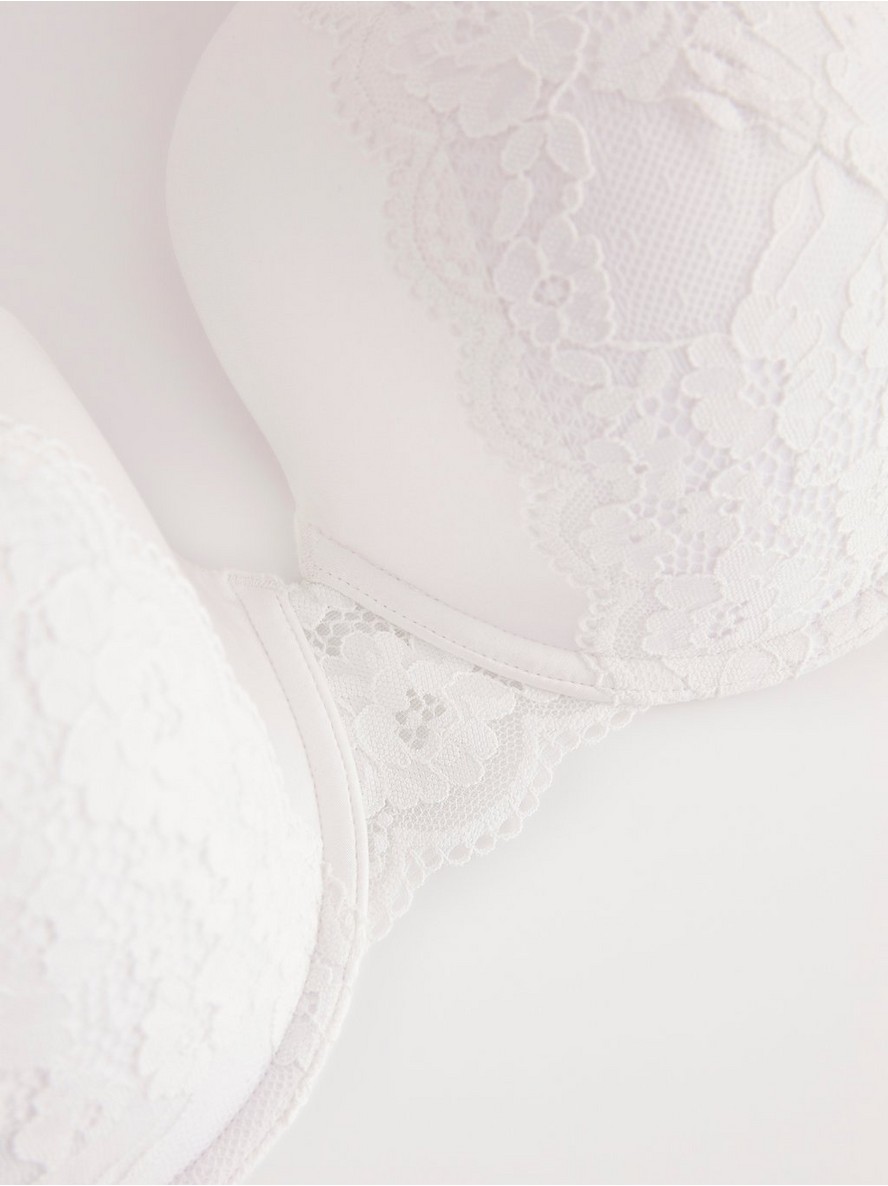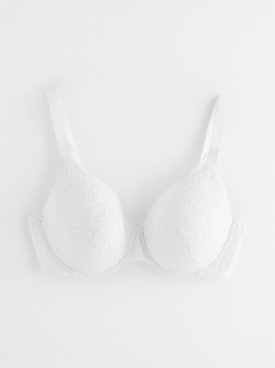 T-shirt grudnjak sa potpunom pokrivenošću, mekanim, tankim punjenjem i širokim naramenicama za dobru podršku. Dolazi sa prelepim prozirnim čipkanim detaljima.