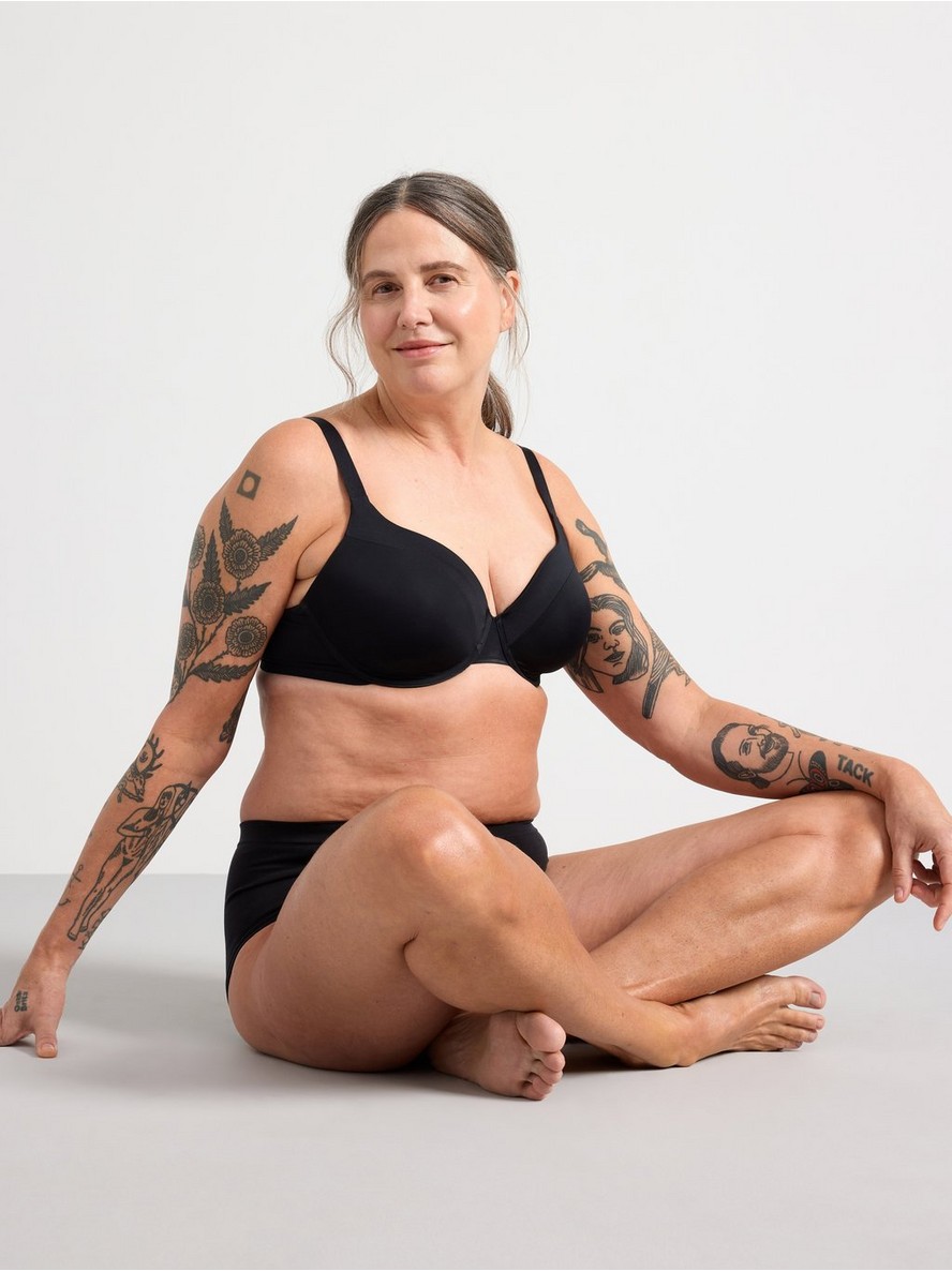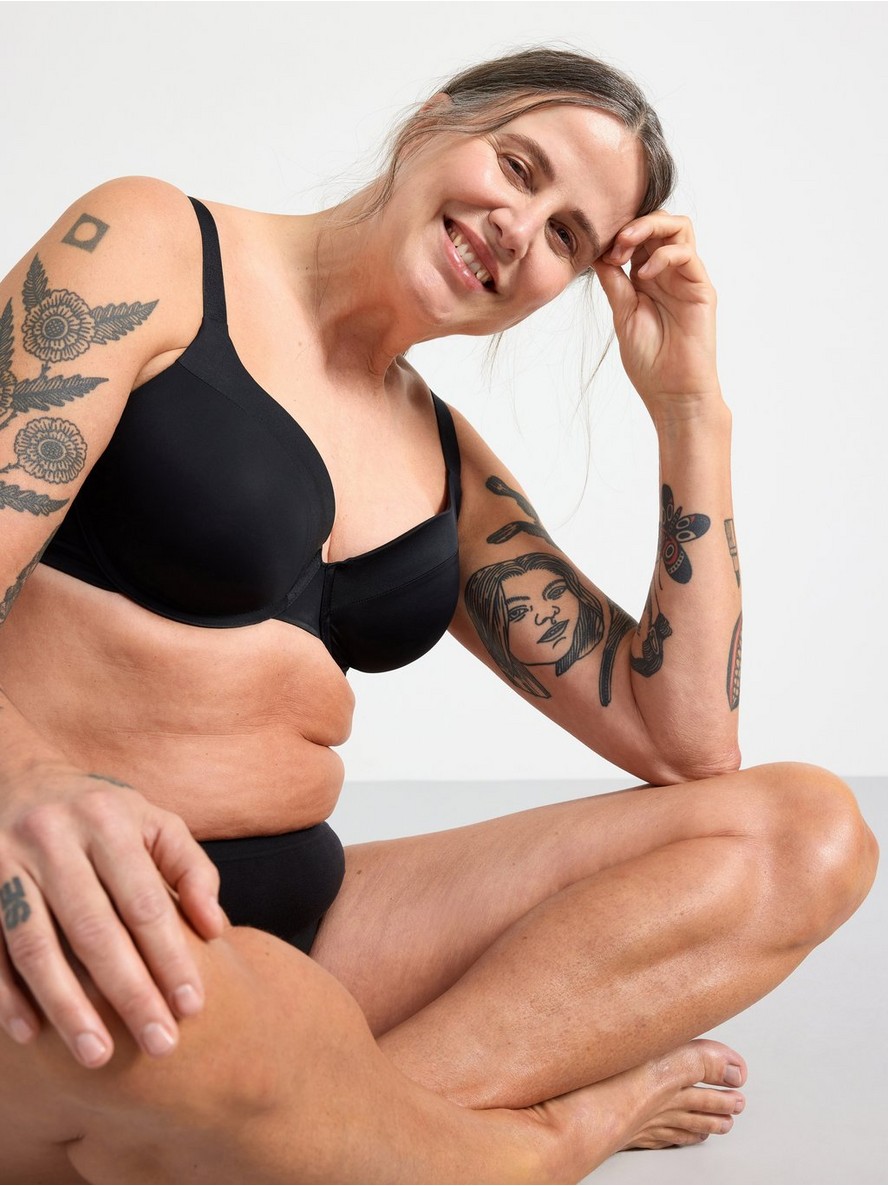 T-shirt grudnjak sa oblikovanim korpicama i potpunom pokrivenošću za dodatnu podršku i udobnost. Mekana, sjajna tekstura dodaje luksuzan dodir.