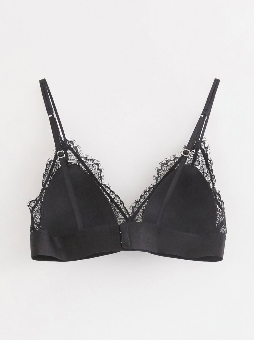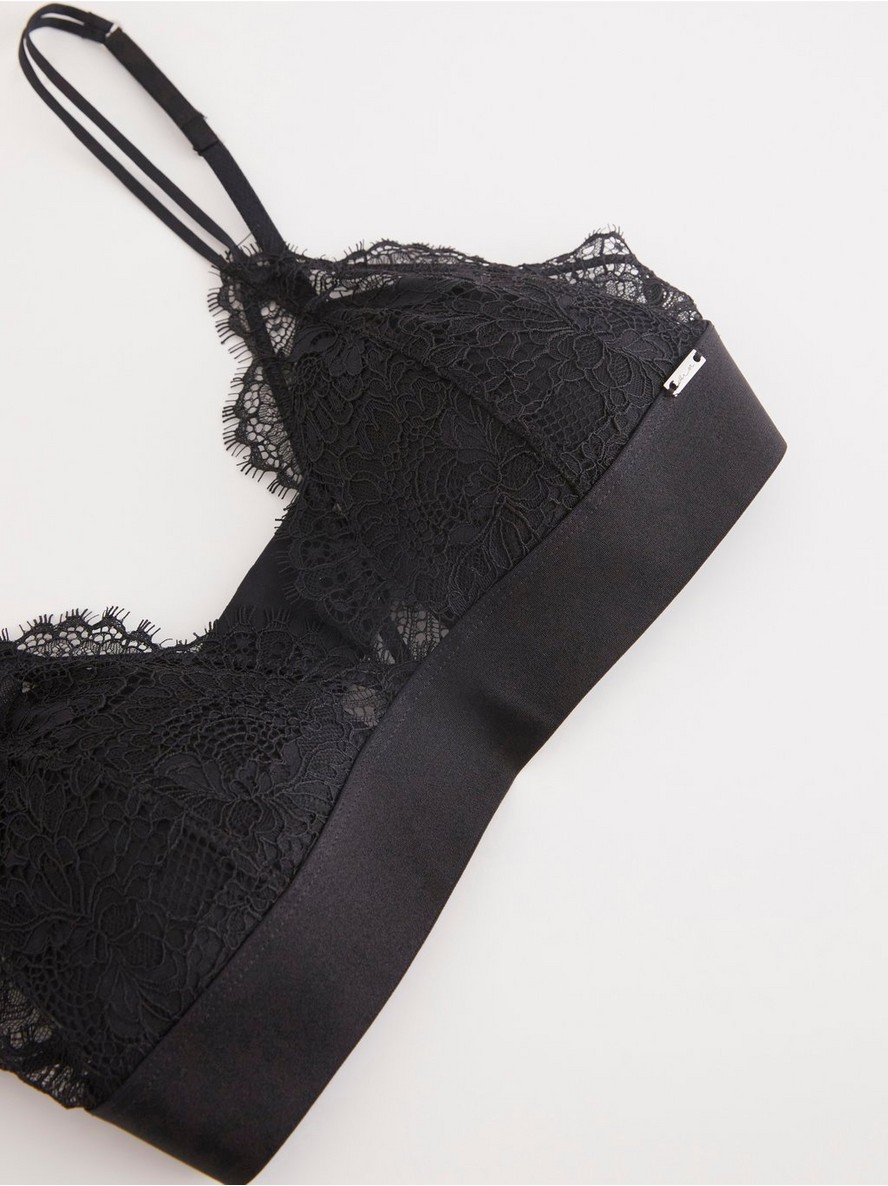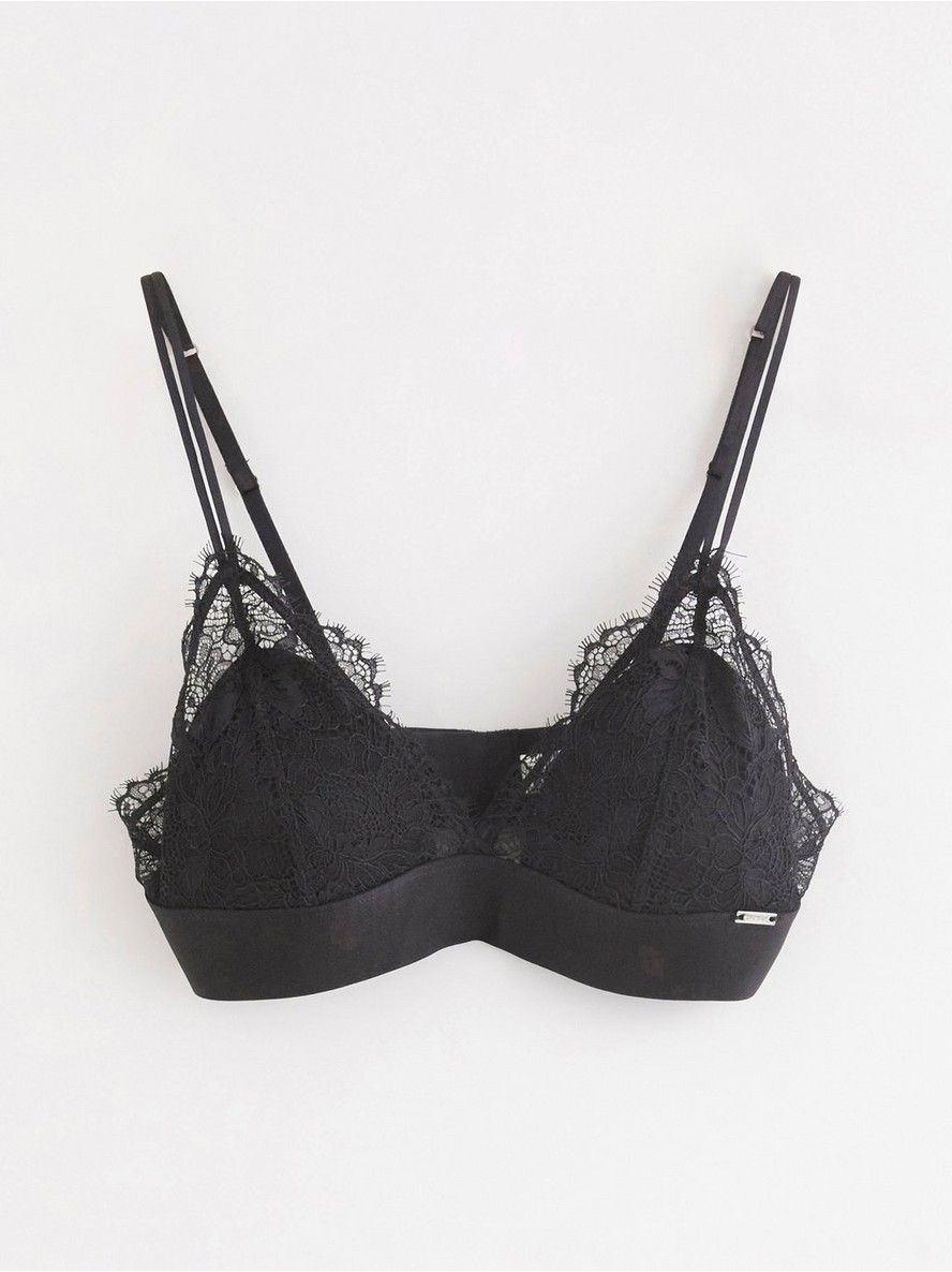 Delikatan čipkani bralet sa dubokim V-izrezom. Tanka podstava u korpicama daje grudnjaku mekan i udoban osećaj.