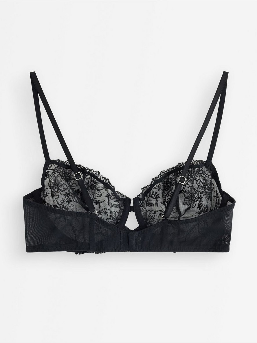 Grudnjak sa žicom bez punjenja, od prozirne čipke i mrežice, sa tankim naramenicama.