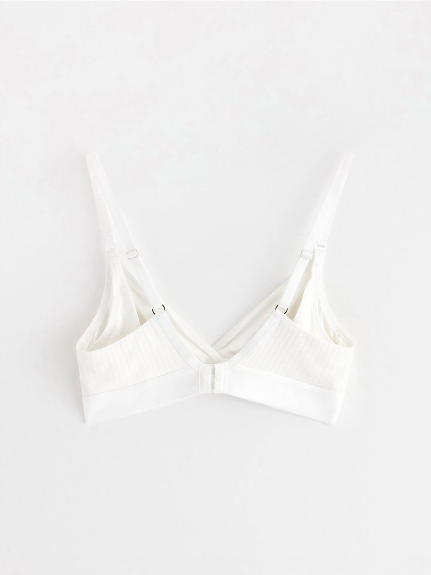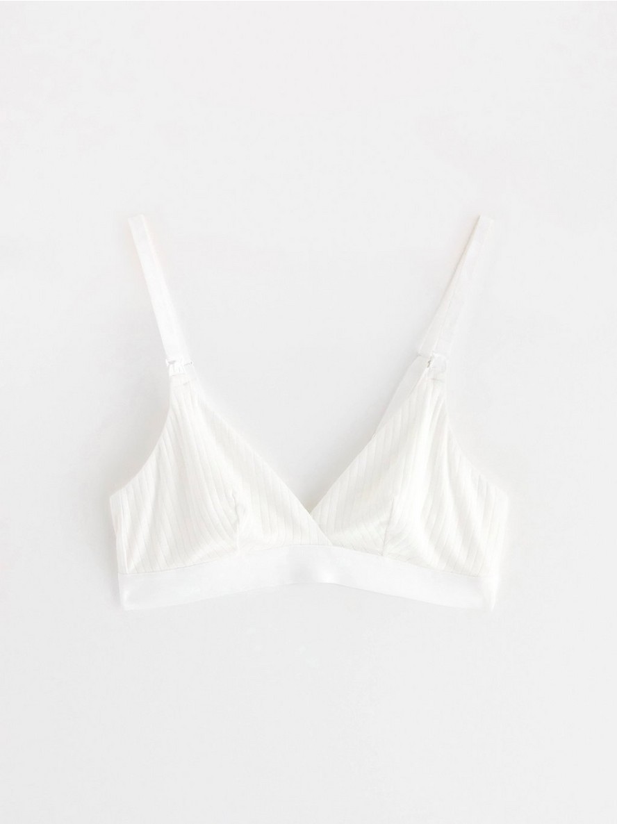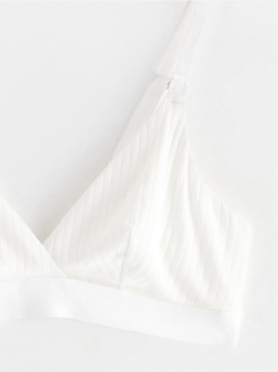 Mekan, rebrast grudnjak za dojenje od pamučne mešavine sa preklopnim dizajnom i spuštajućim čašicama.
