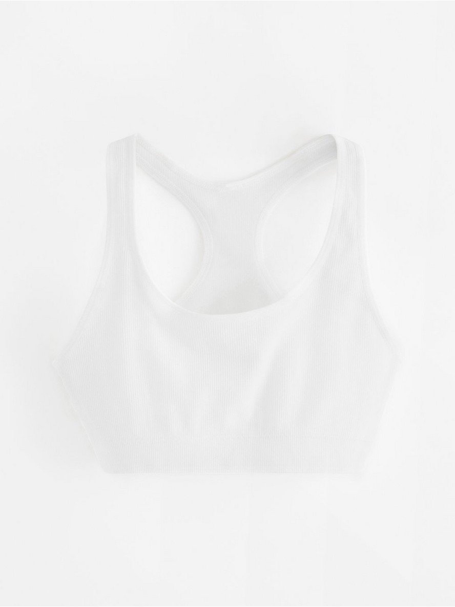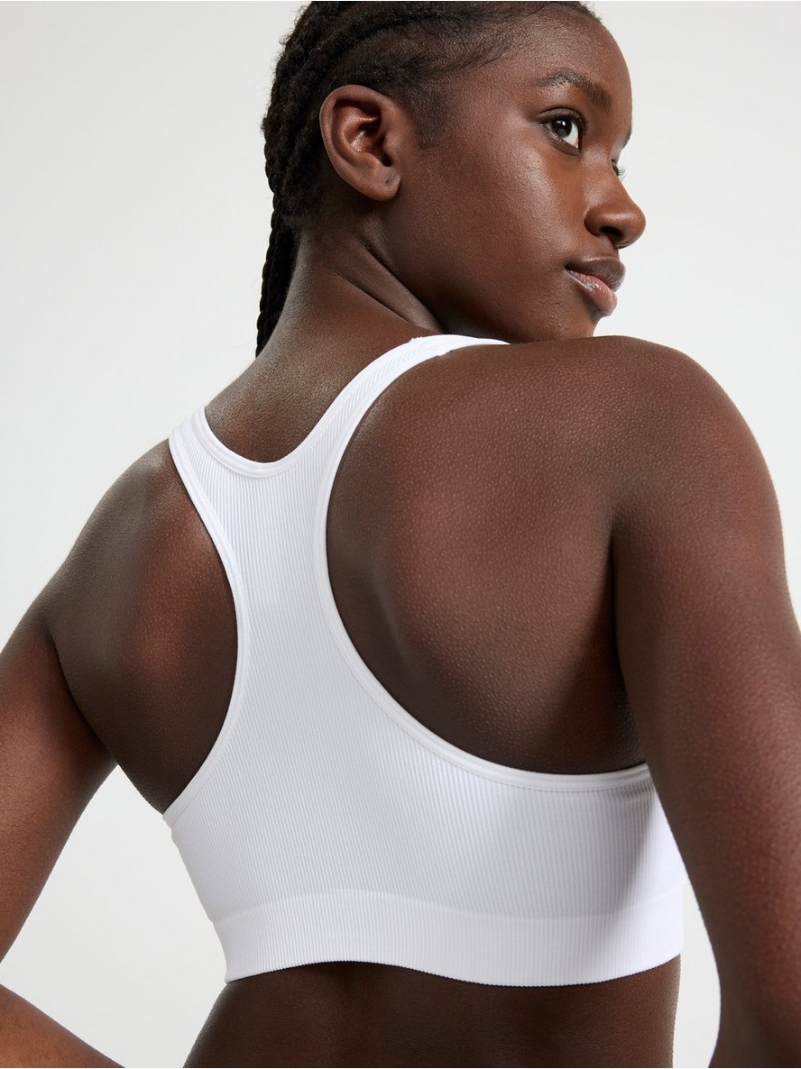 Izuzetno udoban, elegantan bralet bez podstave, sa bezšivnim dizajnom, rebrastom teksturom i racerback krojem.