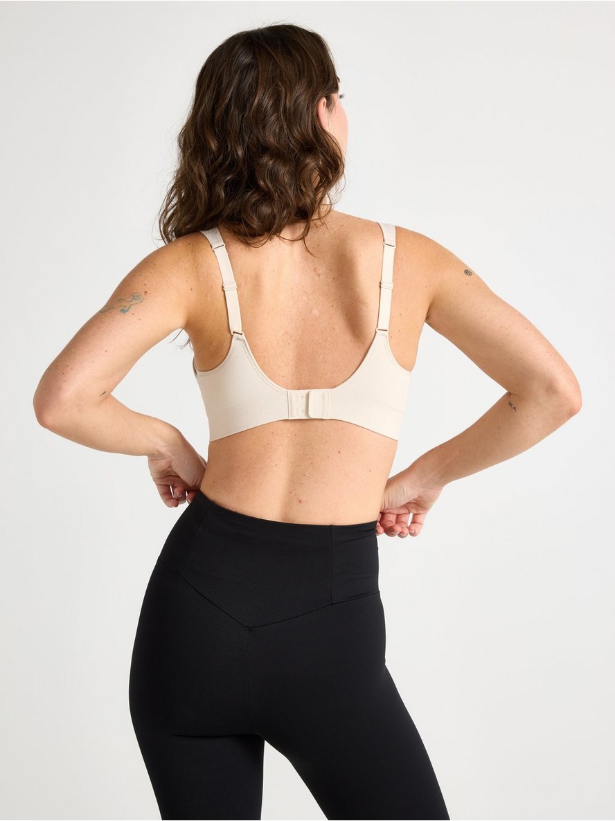 Izuzetno udoban sportski grudnjak sa odličnim prijanjanjem koji prati svaki vaš pokret i pruža laganu podršku. Bešavan dizajn i oblikovane košarice sa tankim punjenjem čine vaše treninge izuzetno udobnim.