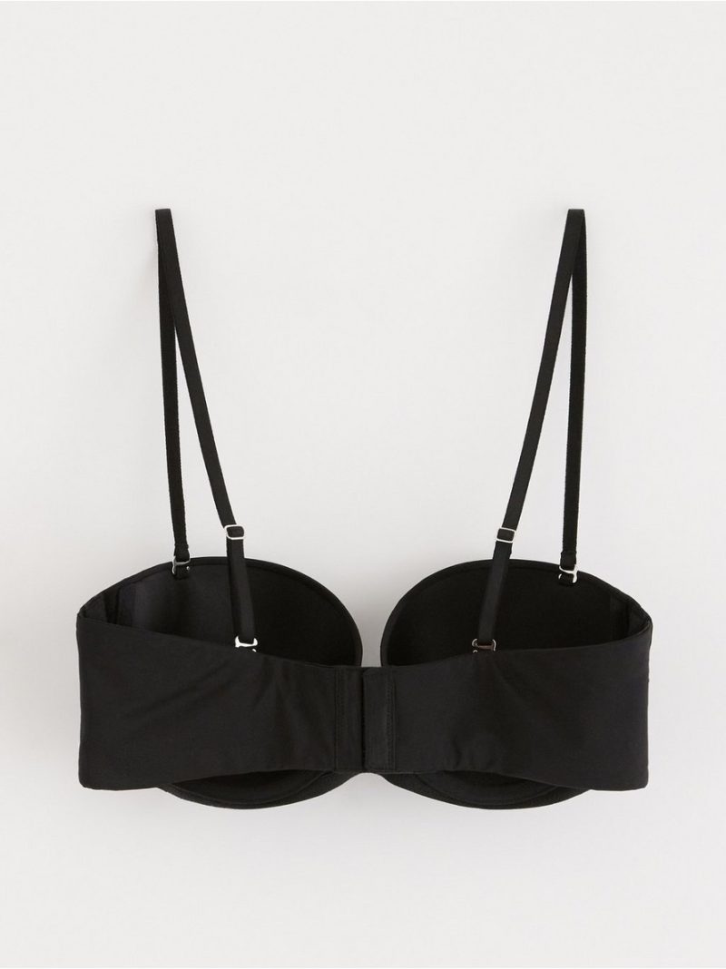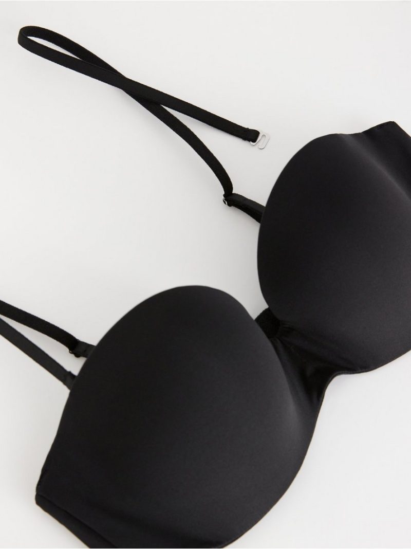 Mekani, svestrani grudnjak bez naramenica, sa podstavljenim korpicama i odvojivim naramenicama.
