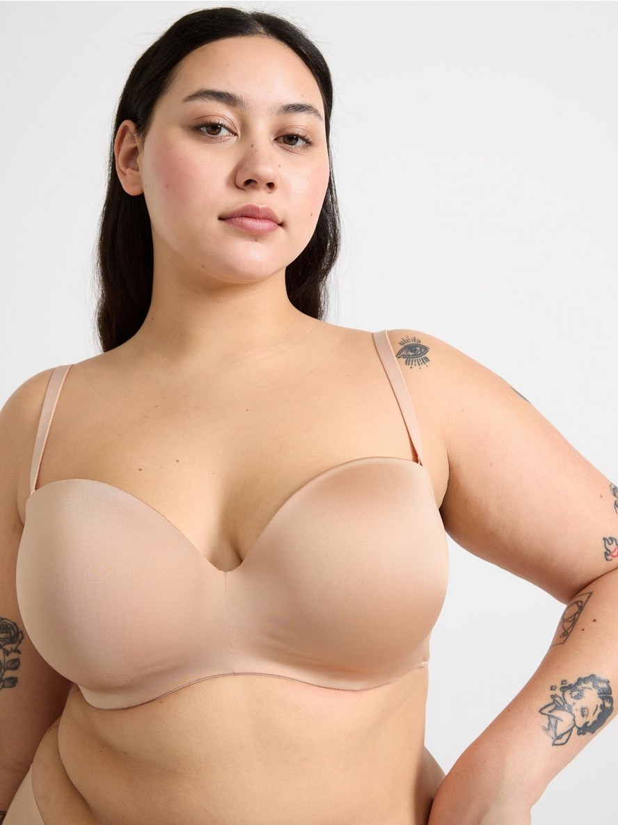Mekan, svestran grudnjak bez bretela sa podstavljеним korpicama i odvojivim naramenicama.