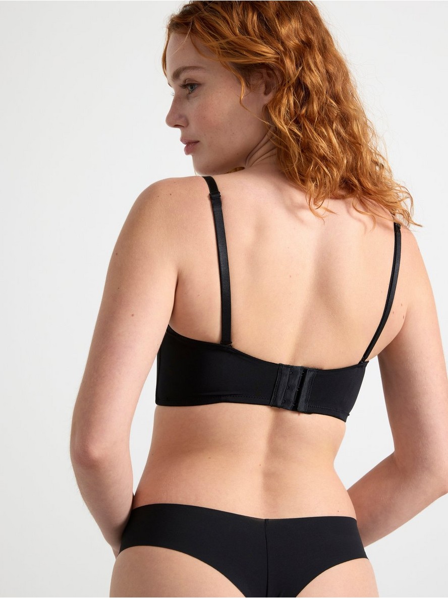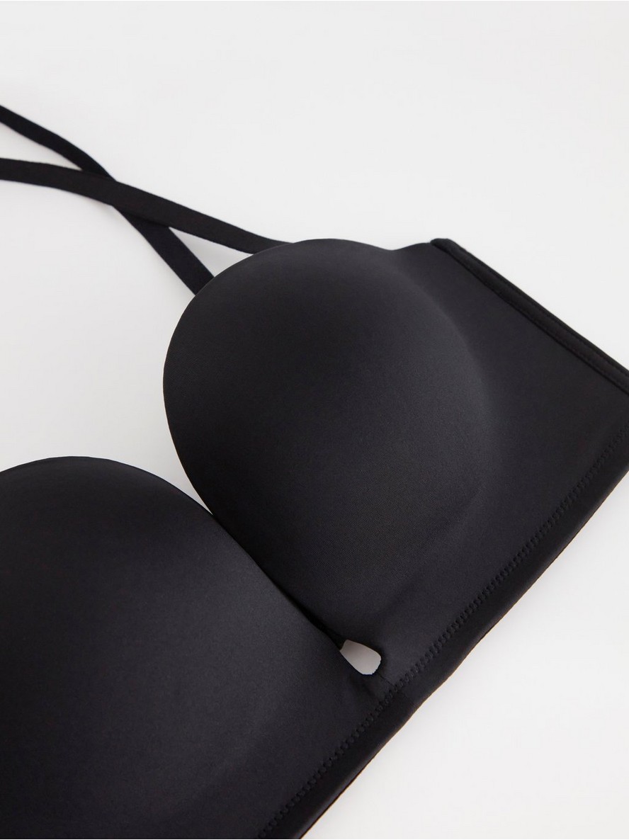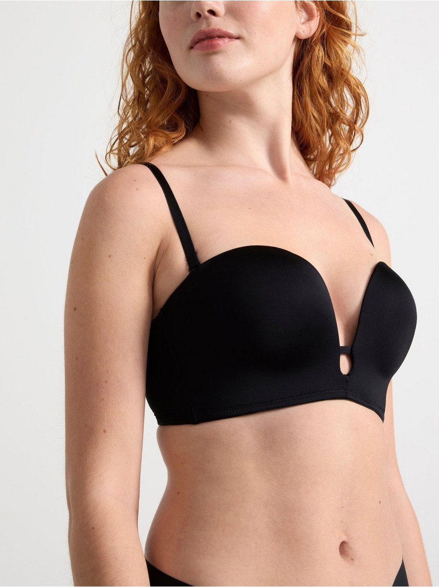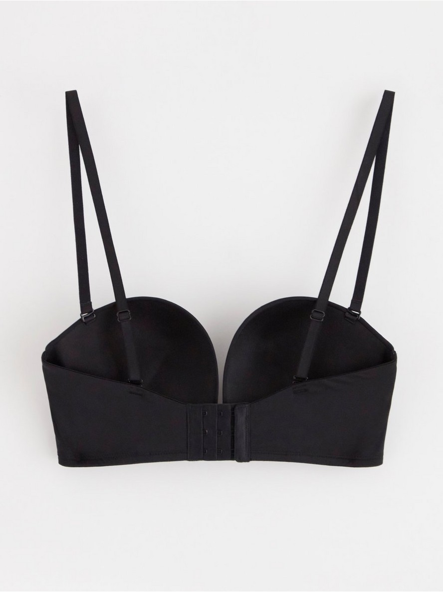 Push-up grudnjak sa dubokim izrezom i podstavljenim korpicama koji podiže i oblikuje grudi odozdo. Višenamenska funkcija sa odvojivim naramenicama omogućava izbor između ravnih, bez naramenica, ukrštenih na leđima ili vezanih oko vrata.