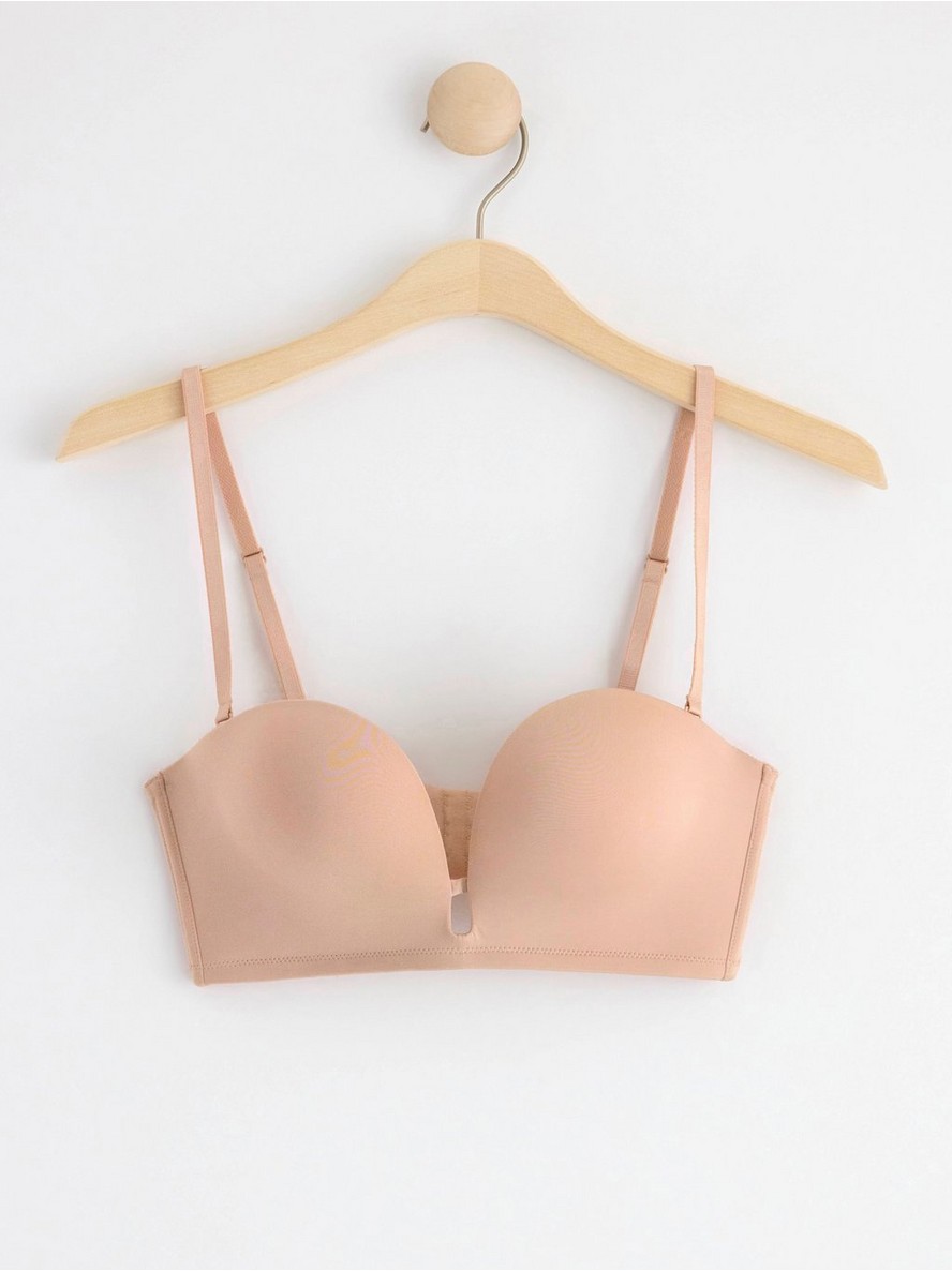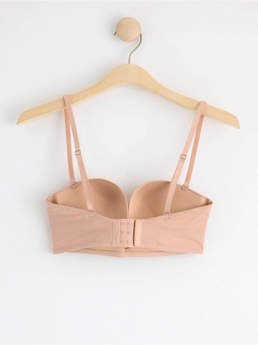 Push-up grudnjak sa dubokim dekolteom i podstavljenim korpicama koji podiže i oblikuje poprsje odozdo. Višenamenska funkcija sa odvojivim naramenicama omogućava izbor između ravnih, bez naramenica, ukrštenih na leđima ili halter kroja.