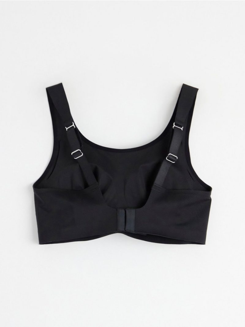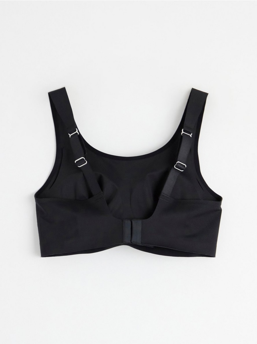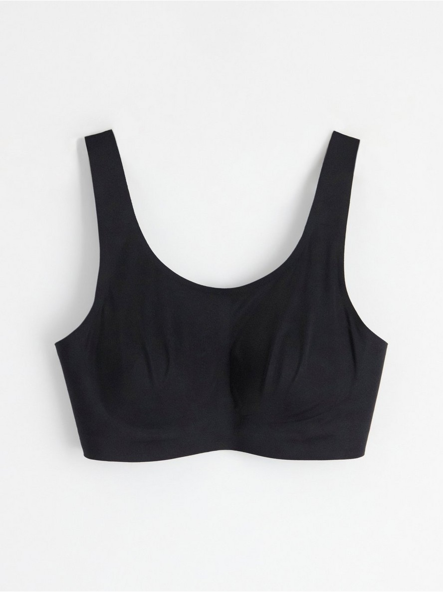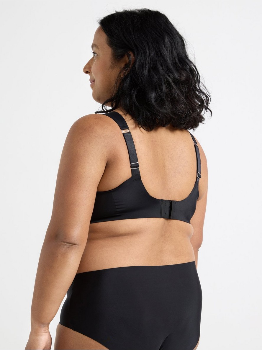 Veoma mekan grudnjak bez žica za proteze, sa baršunastim ivicama i košaricama sa uklonjivim podlogama. Obe košarice imaju džepove za proteze.