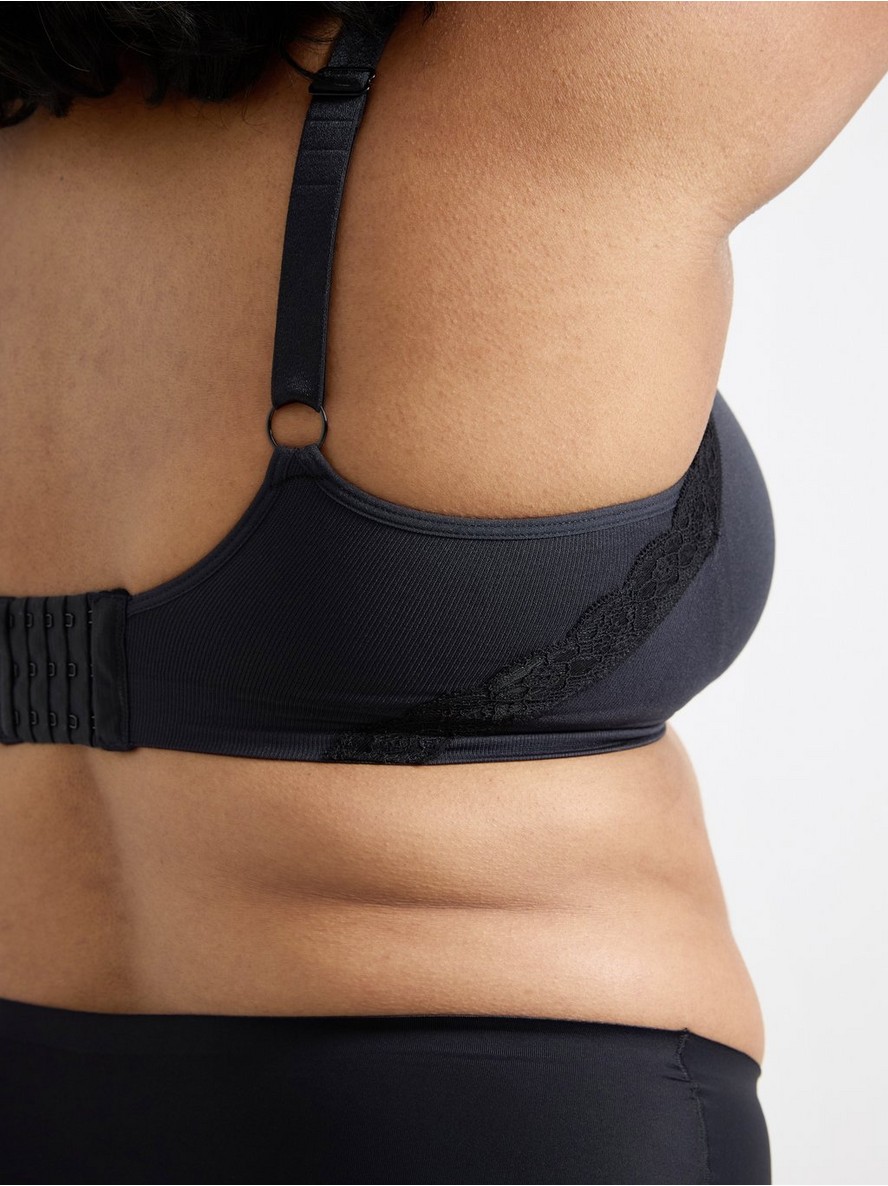 Mekan grudnjak bez žice za protezu sa podesivim naramenicama. Obe košarice imaju džepove za protezu. Kopča sa kukicama na grudnjacima razlikuje se po broju kukica u zavisnosti od kroja i veličine. Za više informacija pogledajte naš vodič za grudnjake.