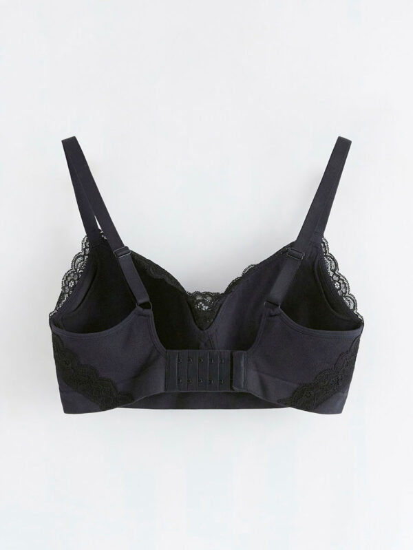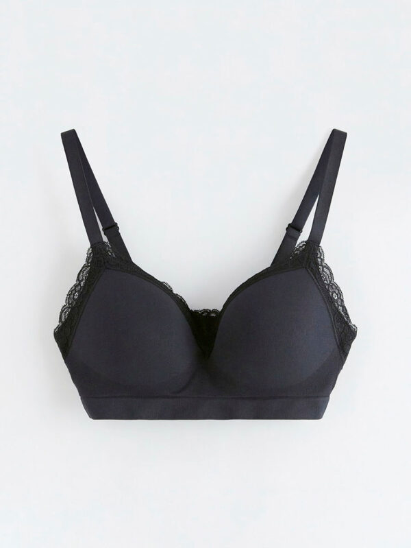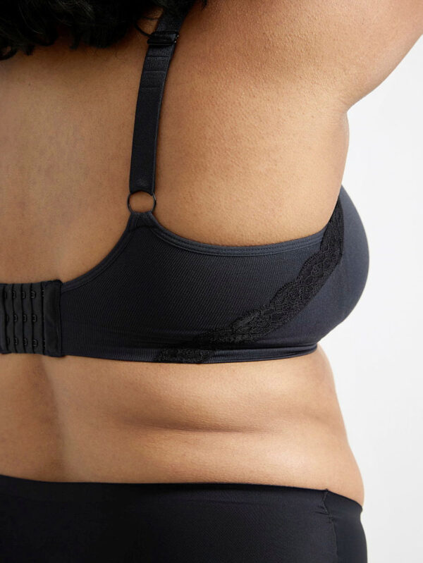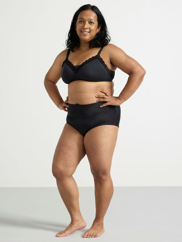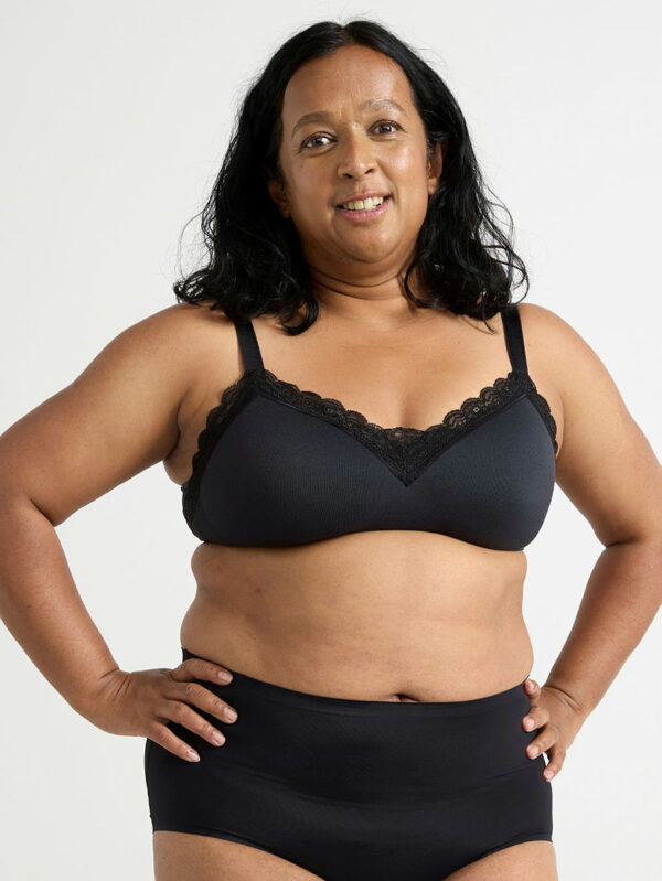 ONLINE EDITION. A soft, wirefree prosthesis bra with adjustable shoulder straps, a seamless design and a lovely floral lace trim to front. Both cups are fitted with pockets for prosthesis. SUSTAINABILITY. This piece is partially made with recycled polyamide. When using recycled polyamide, it means material that otherwise would have gone to waste, gets another chance. It is a lot more resource efficient compared to producing new material, which makes it better for the environment and reduces the climate impact.