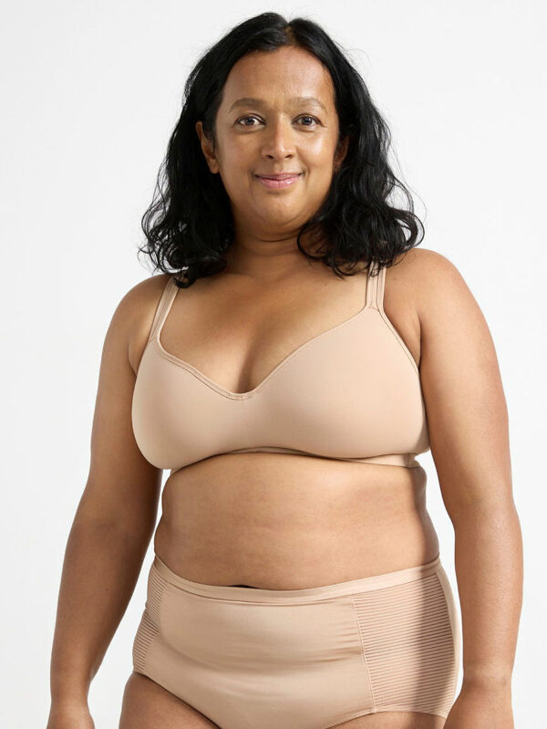 ONLINE EDITION. Soft, wirefree prosthesis bra with adjustable shoulder straps. Both cups are fitted with pockets for prosthesis. SUSTAINABILITY. This piece is partially made with recycled polyamide. When using recycled polyamide, it means material that otherwise would have gone to waste, gets another chance. It is a lot more resource efficient compared to producing new material, which makes it better for the environment and reduces the climate impact.