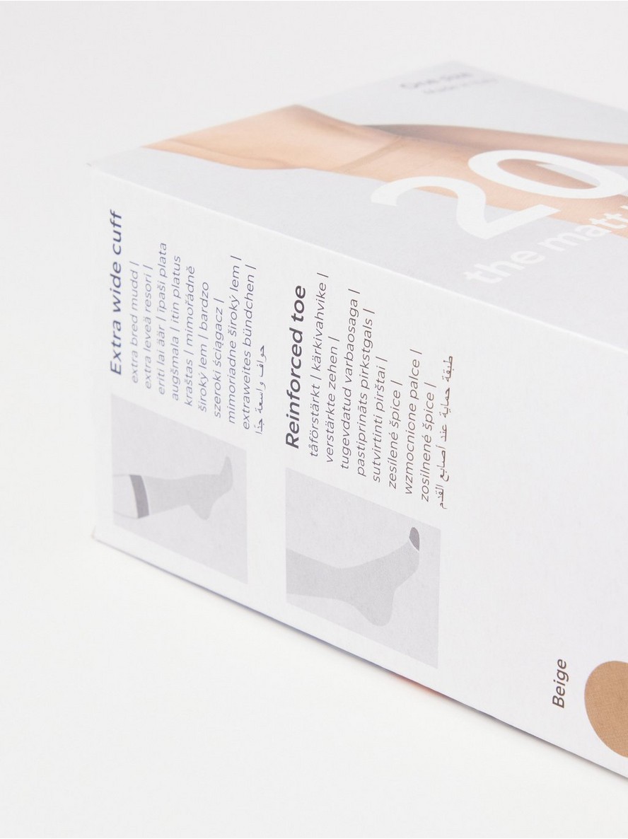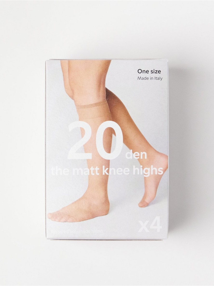 Pakovanje od 4 para mekih i rastegljivih mat podkolenica sa ekstra širokom manžetom i ojačanim vrhom.