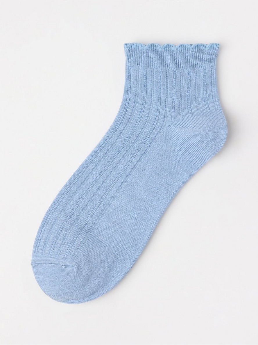 Meke, rebraste čarape do gležnja sa ukrasnim volanom.