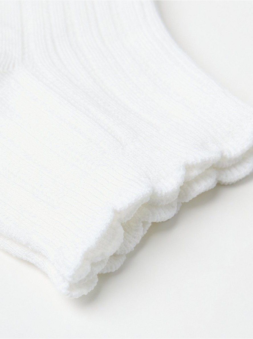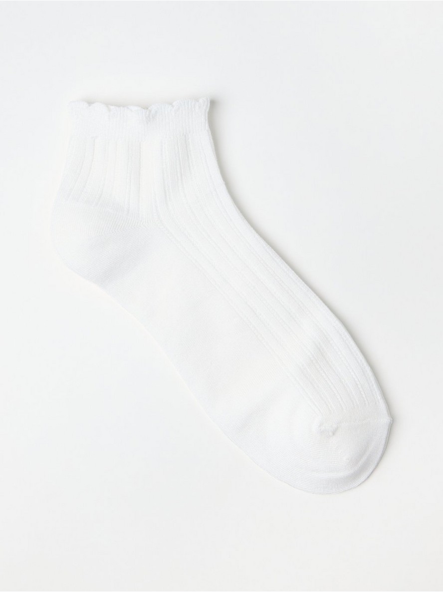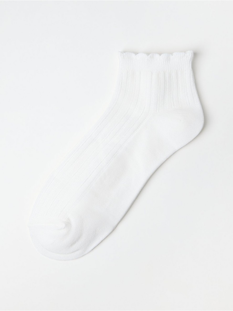 Meke, rebraste čarape koje sežu do članka, sa volančićem.