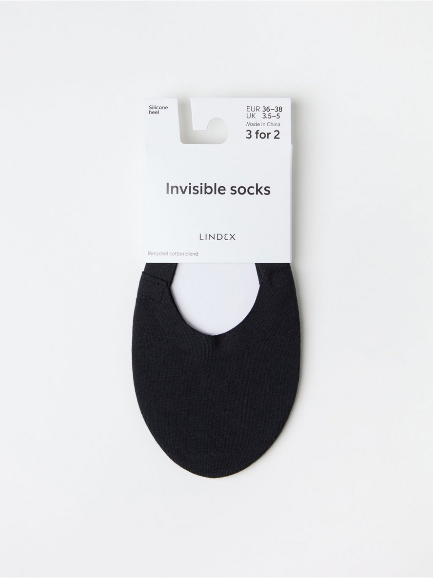 Nevidljive čarape u mešavini pamuka sa silikonskim držačem na peti i udobnim lepljenim rubom.