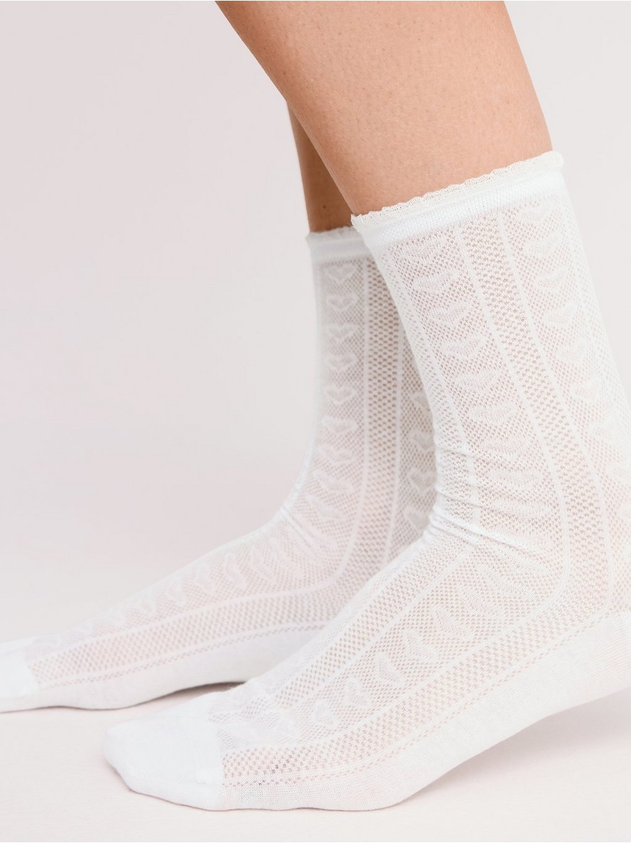 Mekane čarape pletene džakard tehnikom sa uzorkom srca po celoj površini.