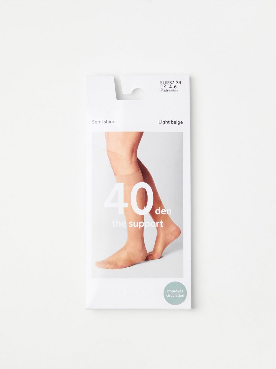 Čarape do kolena od 40 den sa udobnom potporom, elastičnim rubom i ojačanim vrhom i petom.