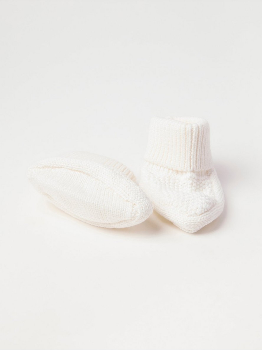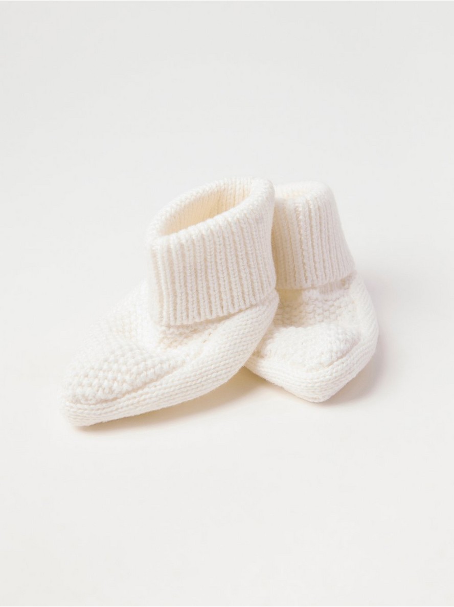 Meke, pletene stopalice za bebe od pamuka, sa rebrastom, preklopljenom manžetnom.