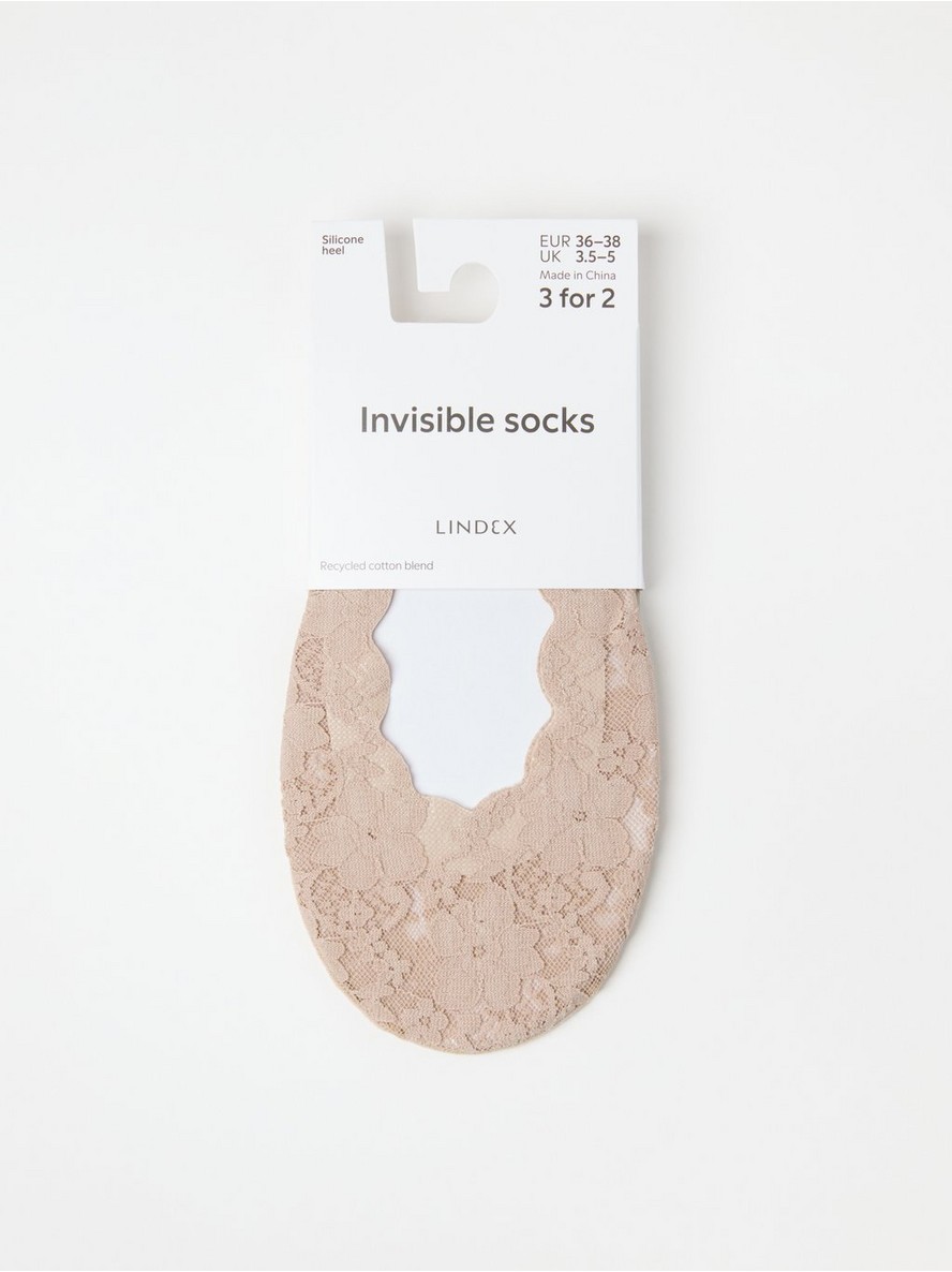 Nevidljive čarape od prozirne čipke sa silikonskim petnim delom.