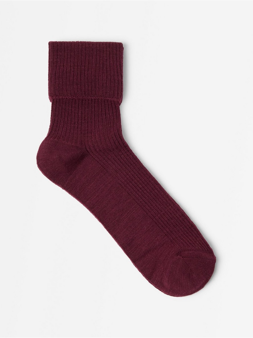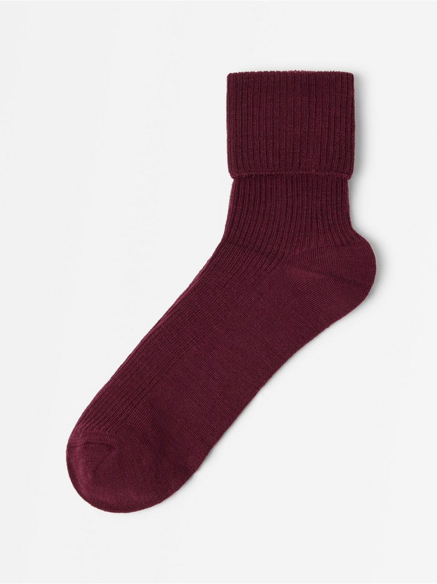 Veoma meke i tople čarape od merino mešavine, u rebrastom izdanju i sa preklopljenom manžetnom. PREMIUM KVALITET. Ovaj komad iz Premium Quality kolekcije delimično je izrađen od merino vune. Merino vuna je mekana i lagana tkanina koja greje i napravljena je da je volite dugi niz godina. Ako pravilno negujete merino vunu, dobićete bezvremenski komad koji ćete nositi iznova i iznova.