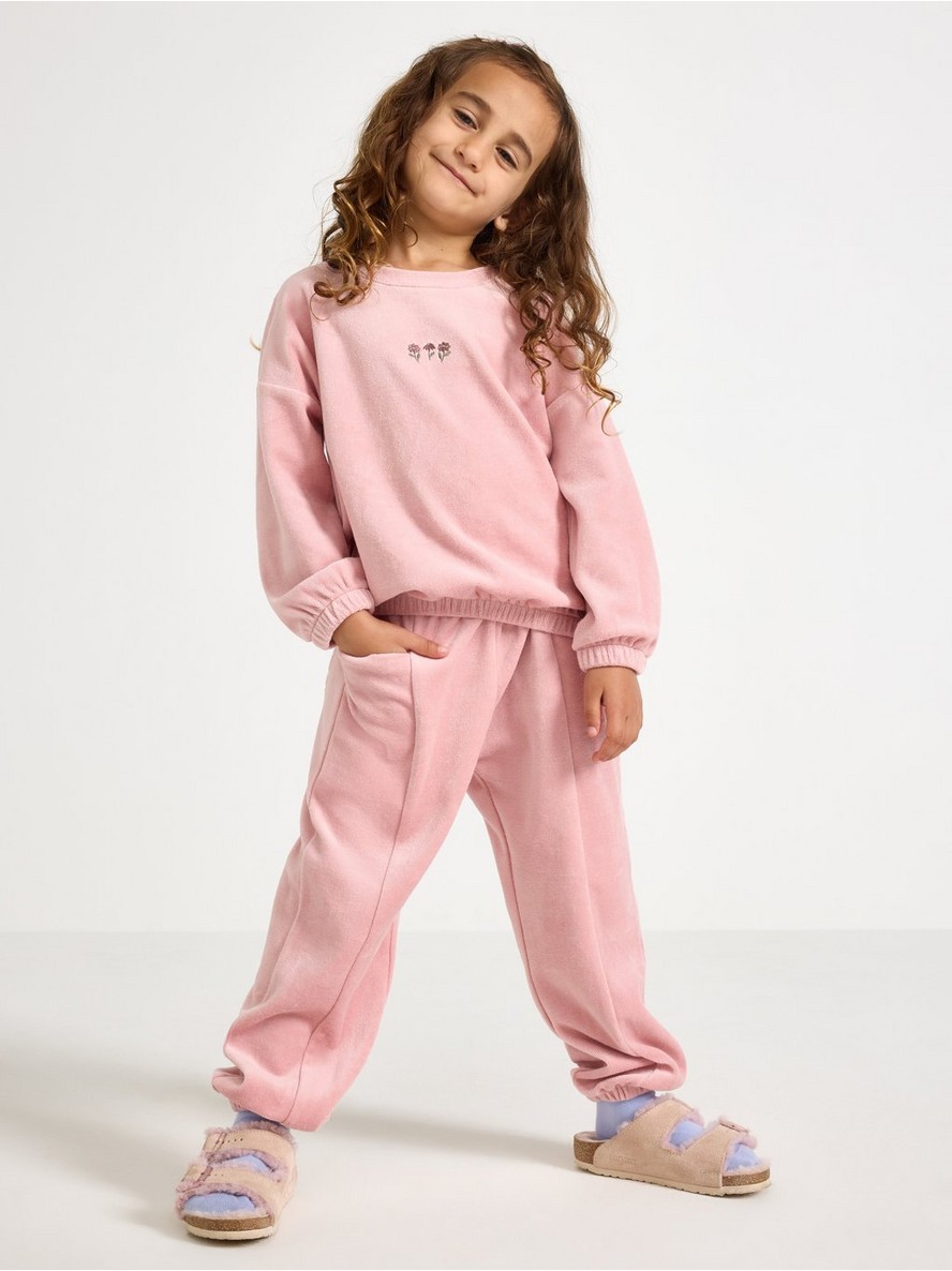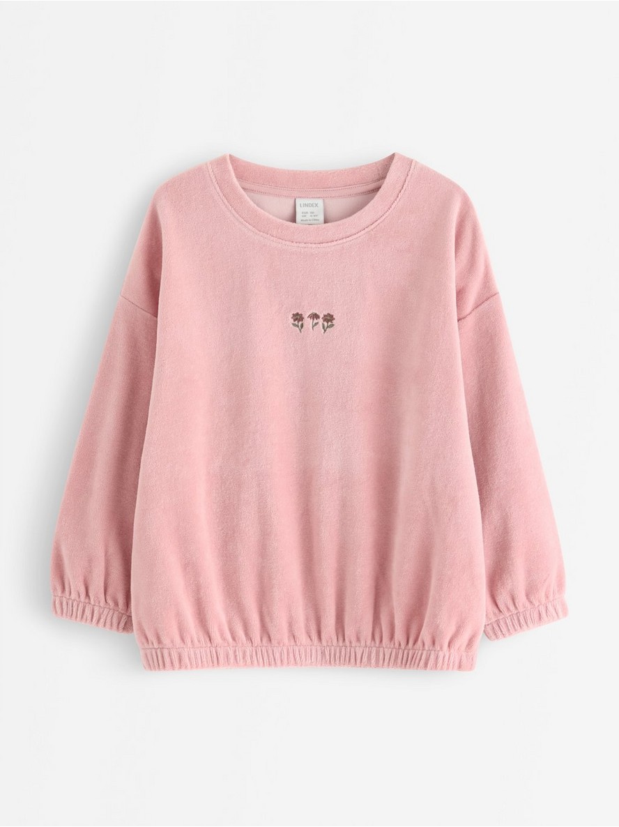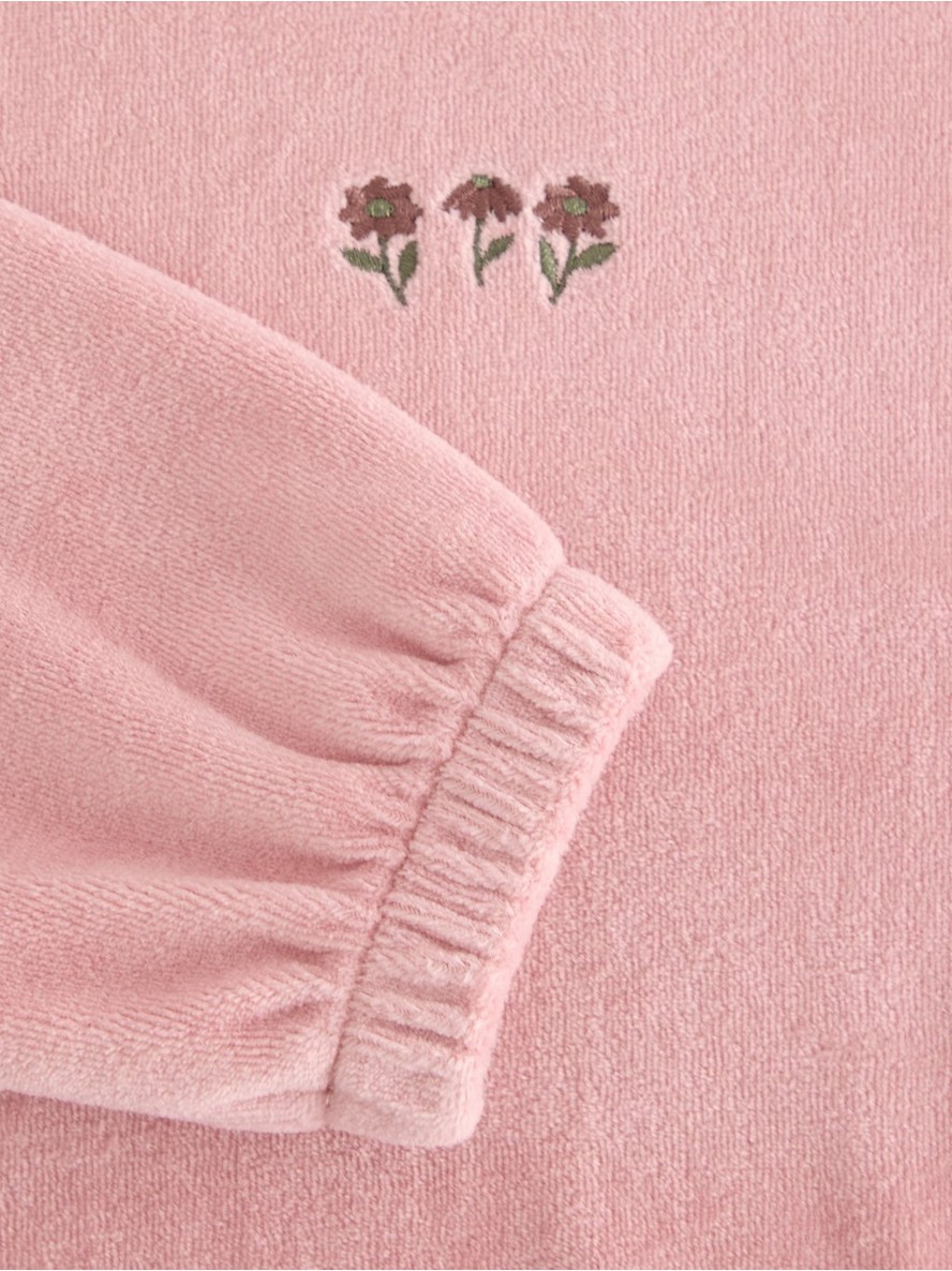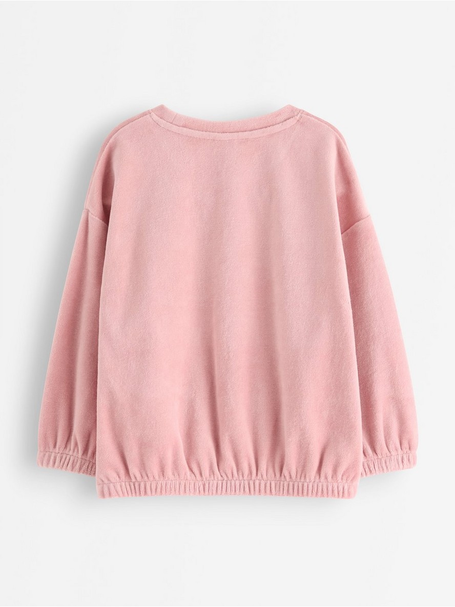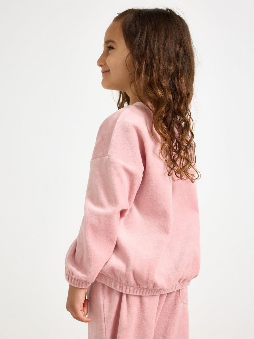 Džemper oversize od velura sa vezom na prednjoj strani i elastičnim manžetnama.