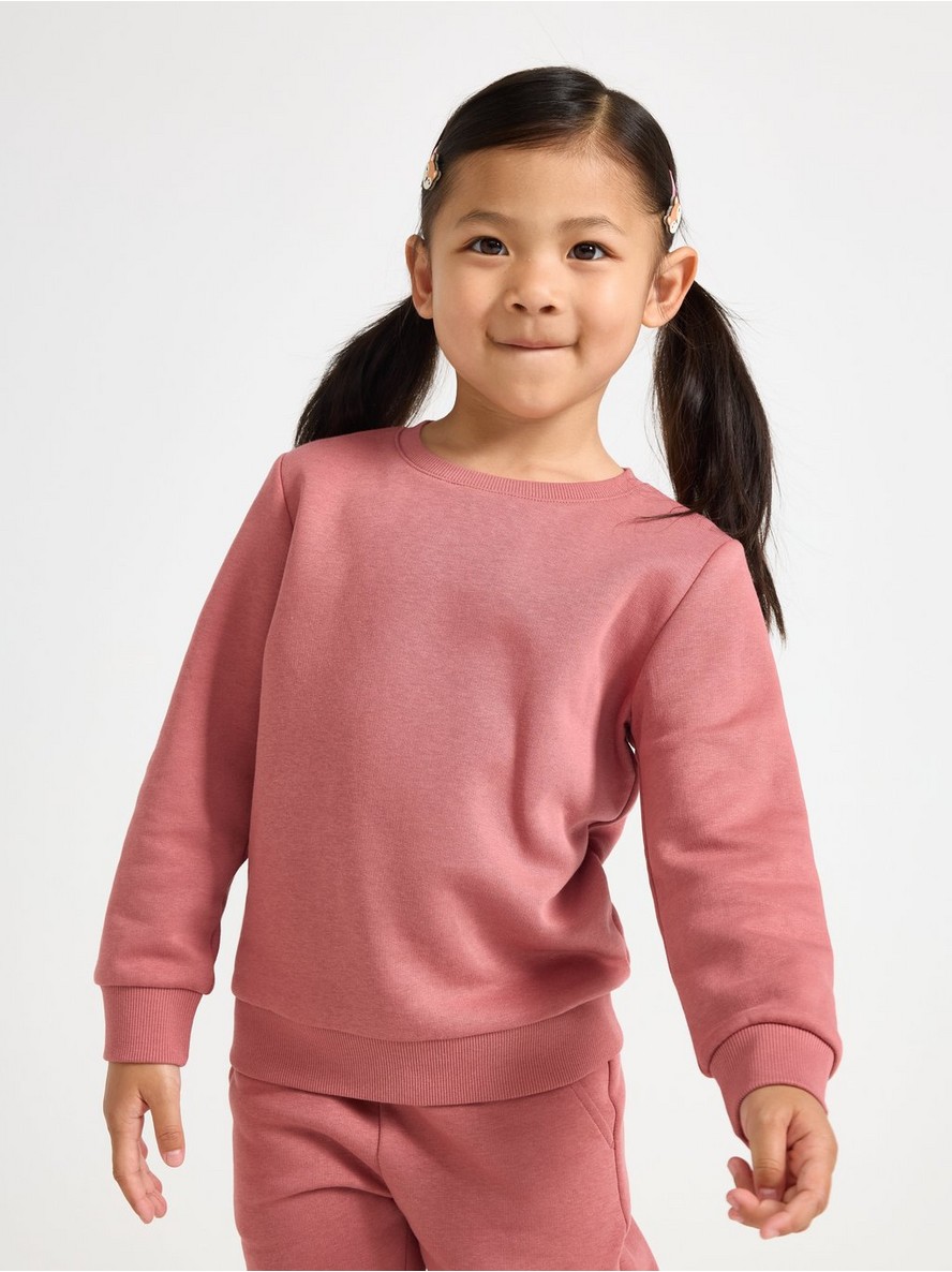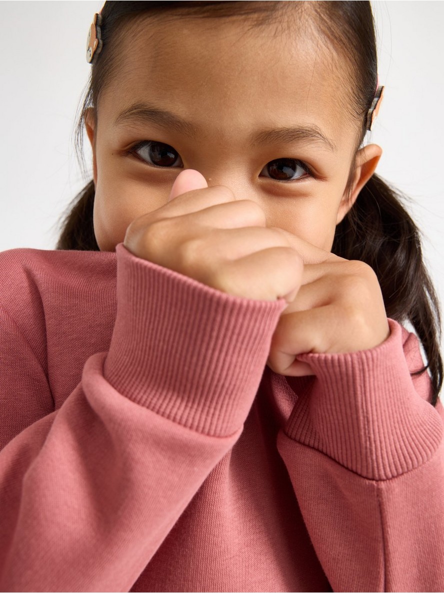 Meka dukserica od pamučnog džerseja sa četkanom unutrašnjošću i rebrastim manžetnama.