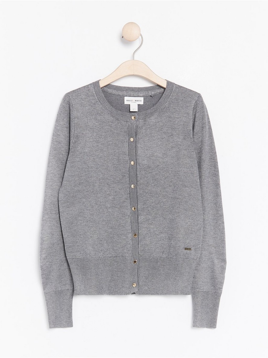 Ovaj klasični kardigan od fine pletenine dostupan je u nekoliko prelepih boja. Volimo detalje poput dugmadi zlatne boje. Kardigan je savršen komad za nošenje preko bilo koje odevne kombinacije — podjednako pogodan za svakodnevno nošenje kao i preko svečane haljine. Kombinujte 2 označena Holly & Whyte artikla za 49,99 € / 39,99 GBP / 199,00 PLN.