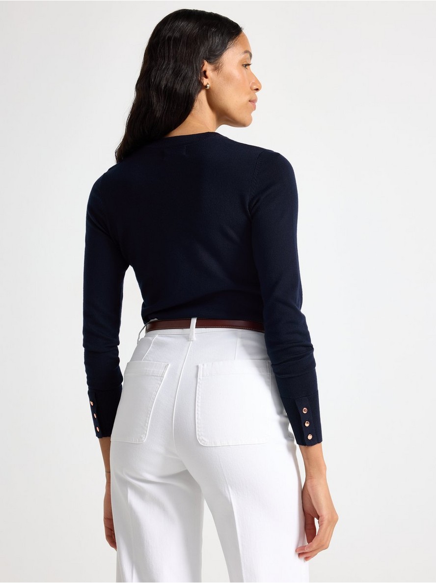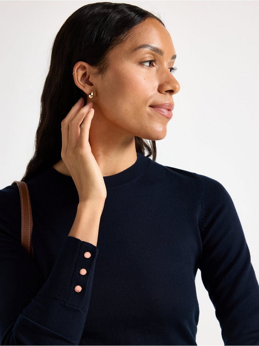 Fino pleteni džemper sa lepim detaljima, poput elegantnih dugmića na završecima rukava.