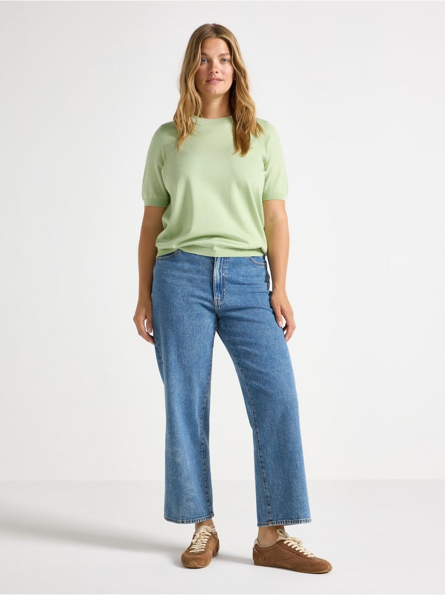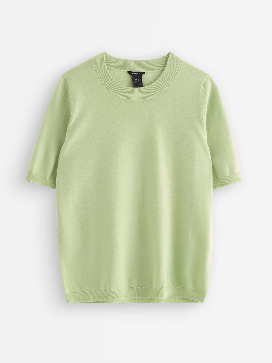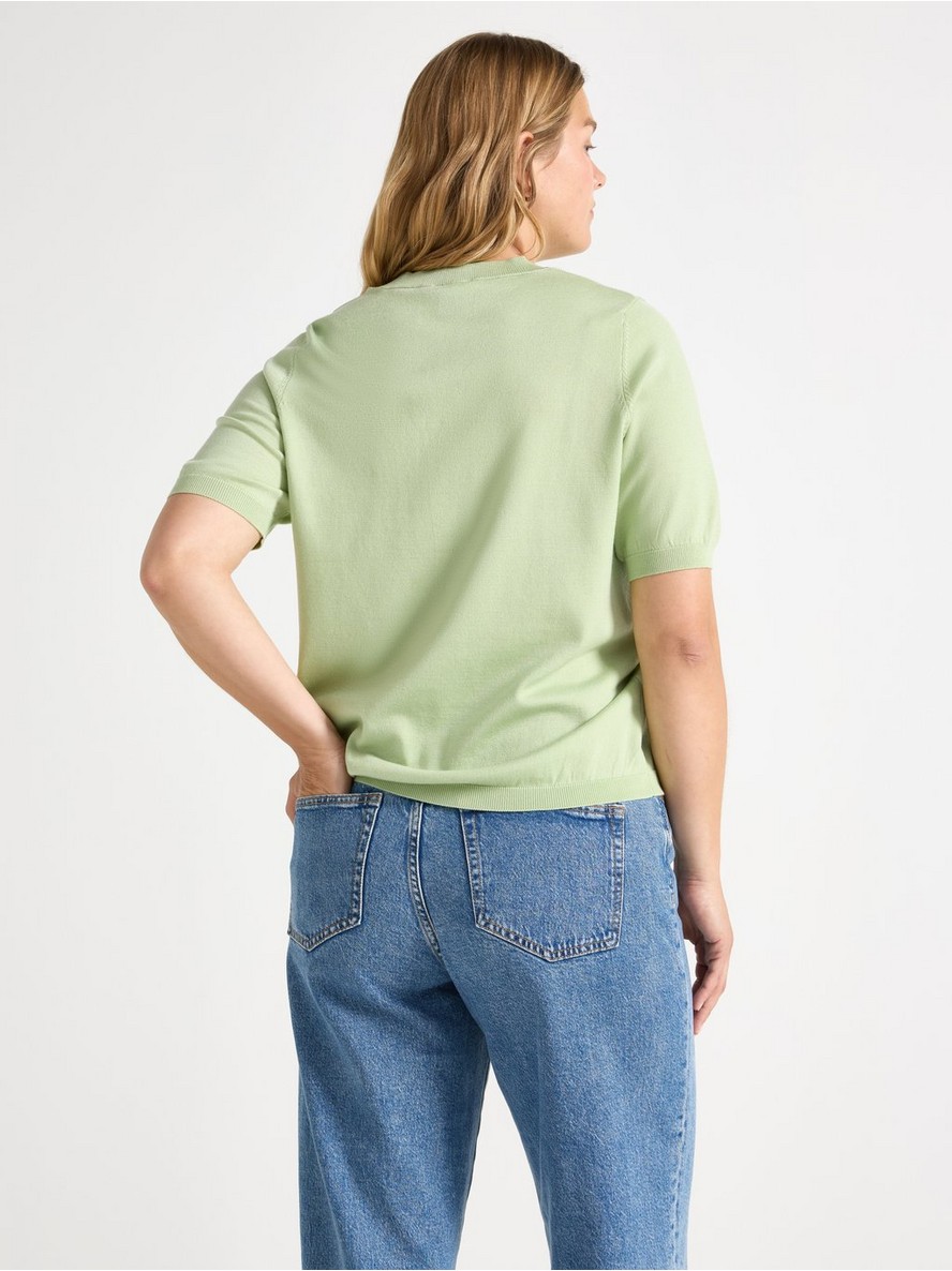 Fino pleteni top sa okruglim izrezom i kratkim rukavima.