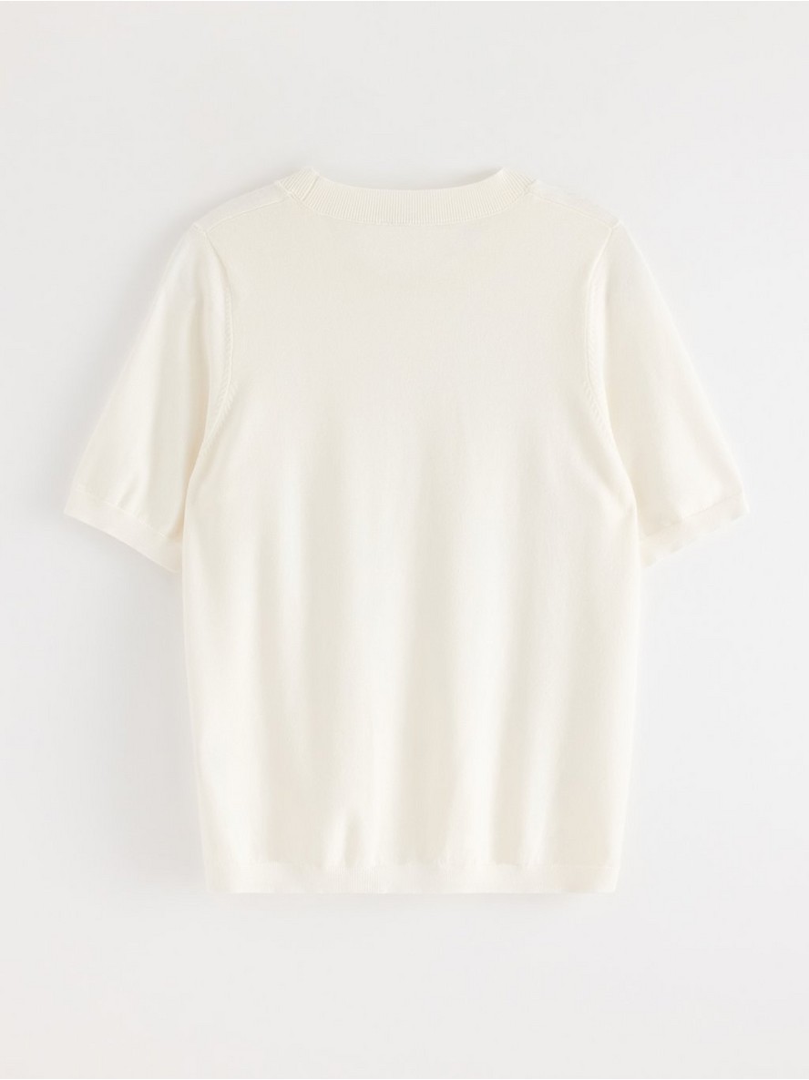 Fino pleteni top sa okruglim izrezom i kratkim rukavima.