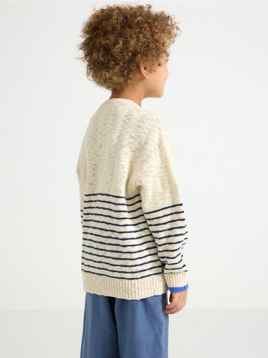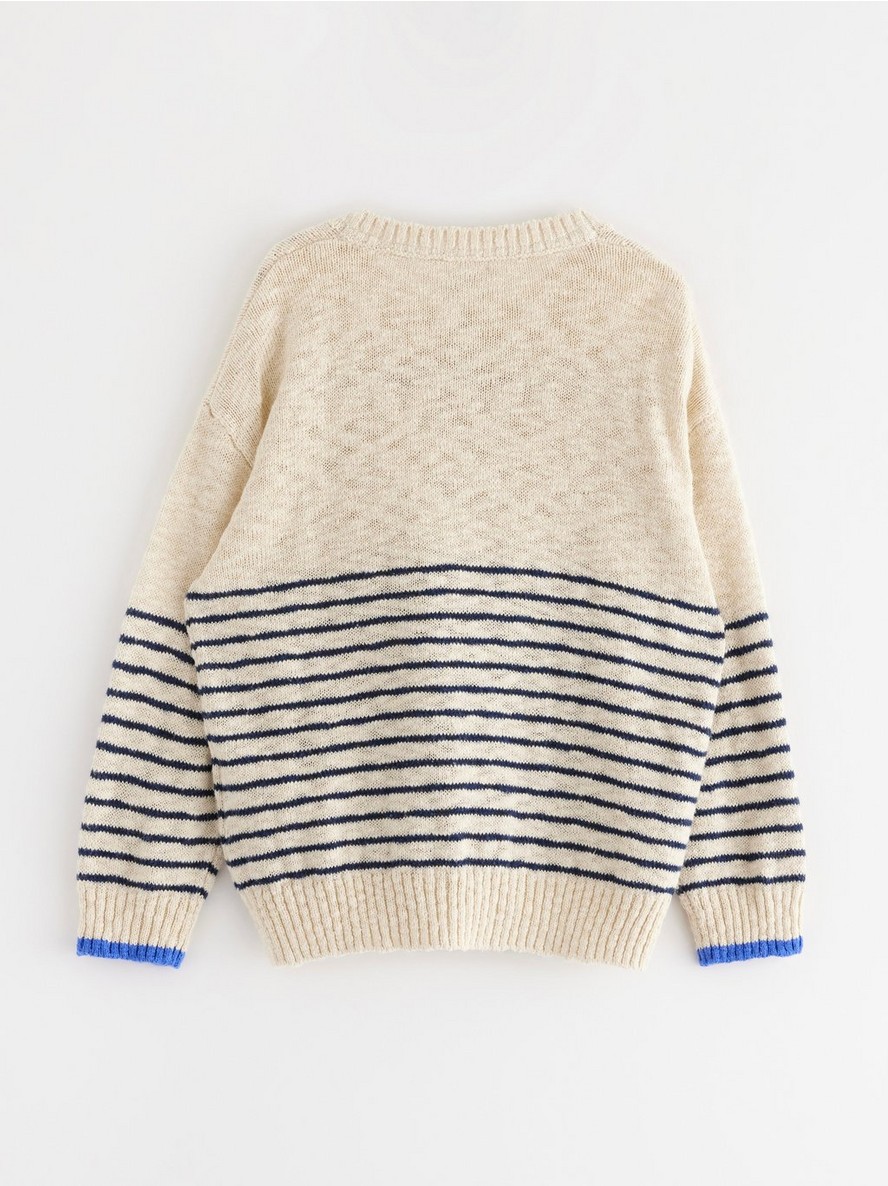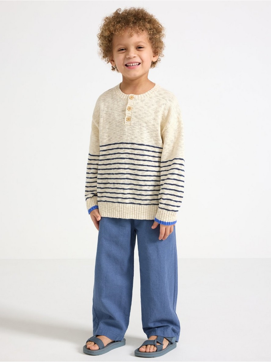 Pleteni džemper od mekanog pamuka sa okruglim izrezom i preklopom sa dugmadima.