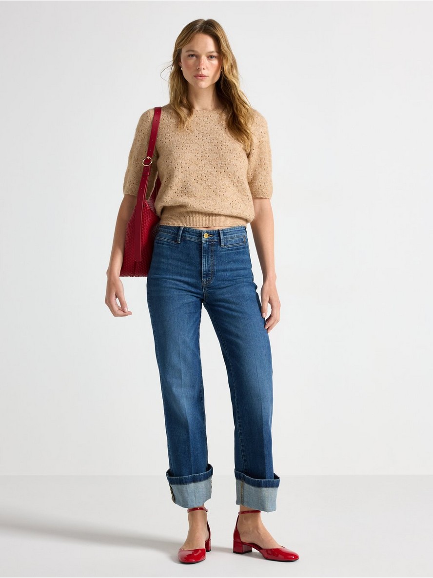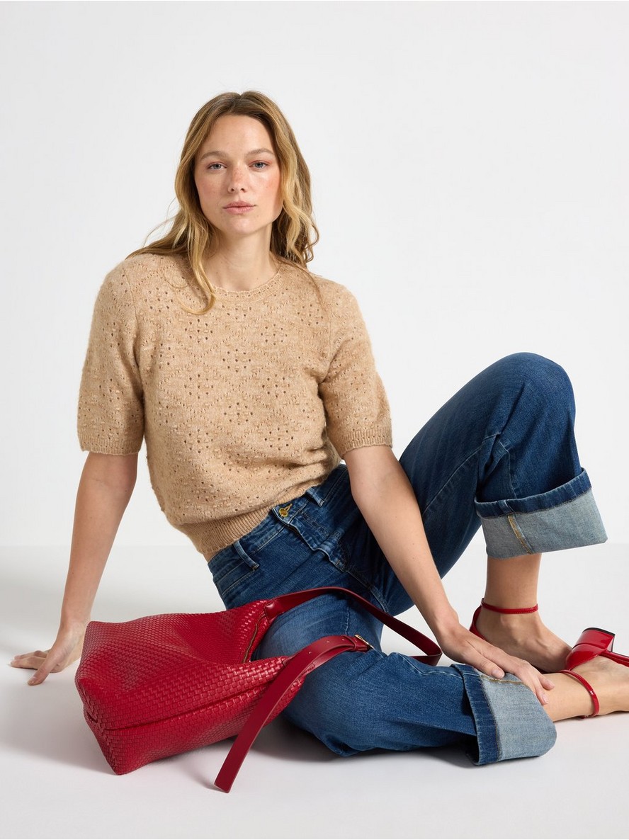 Meki džemper kratkih rukava sa rupičastim uzorkom po celoj površini.