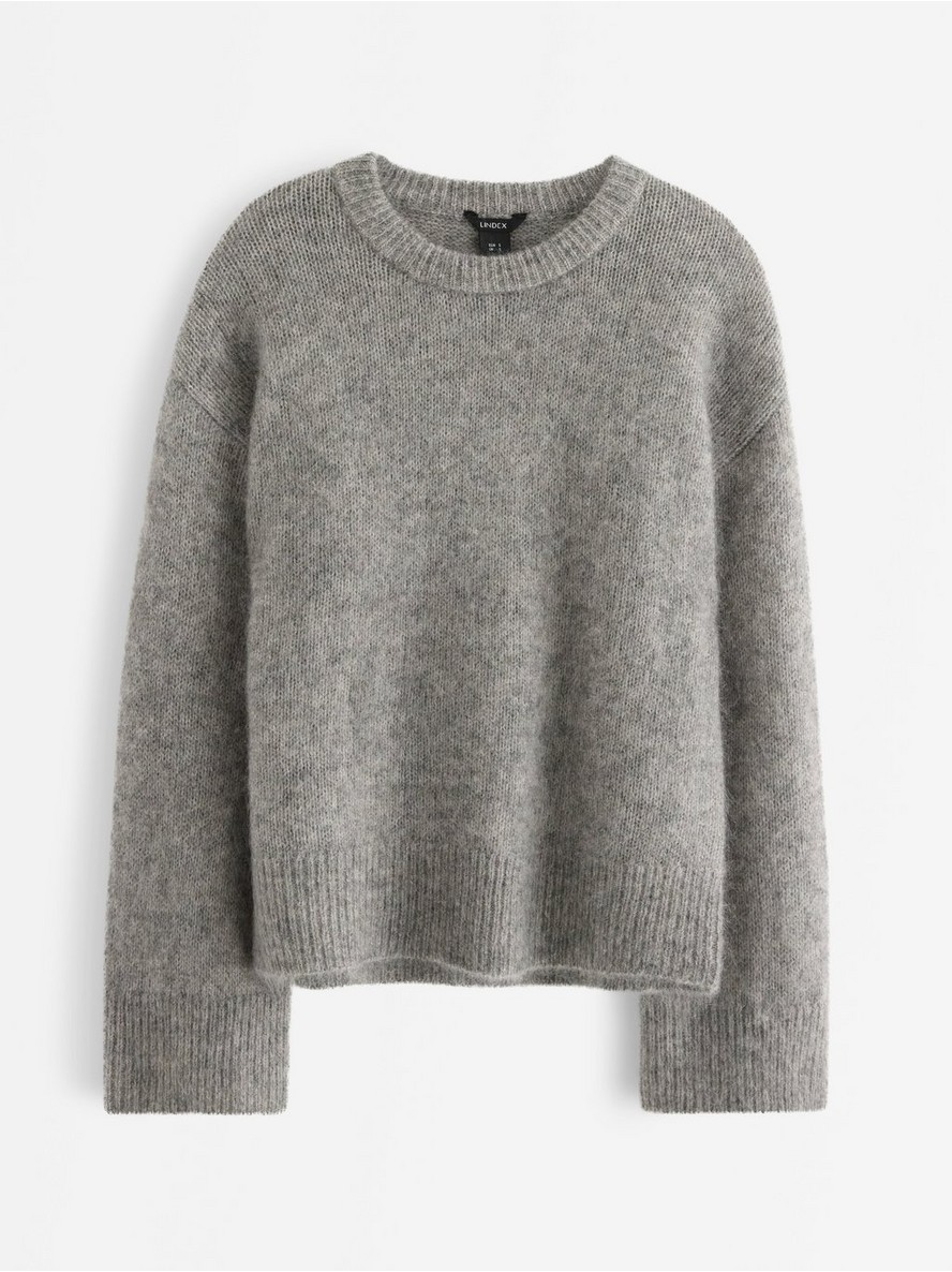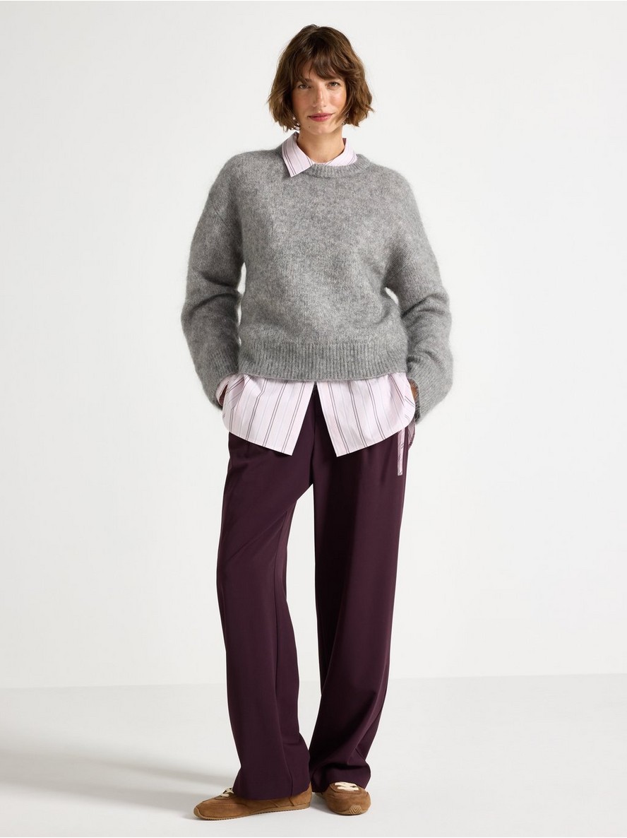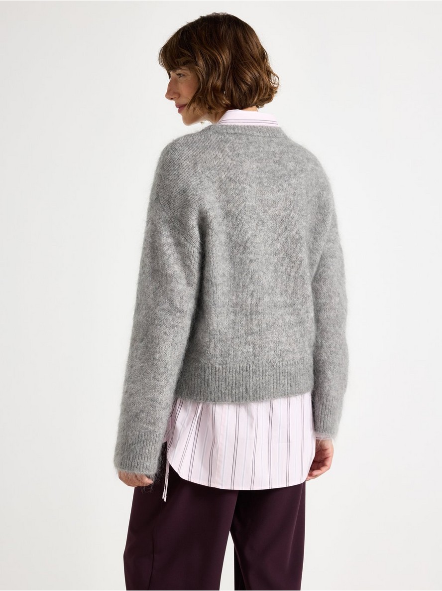 Ugodan pleteni džemper od mohair mešavine sa okruglim izrezom i blago širim rukavima.