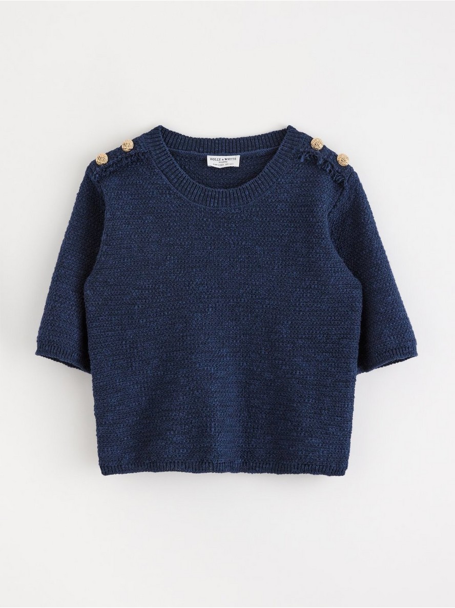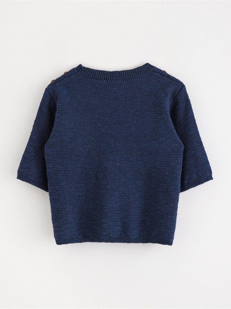 Moderan pleteni džemper sa kratkim rukavima i dugmadima u zlatnoj boji.
