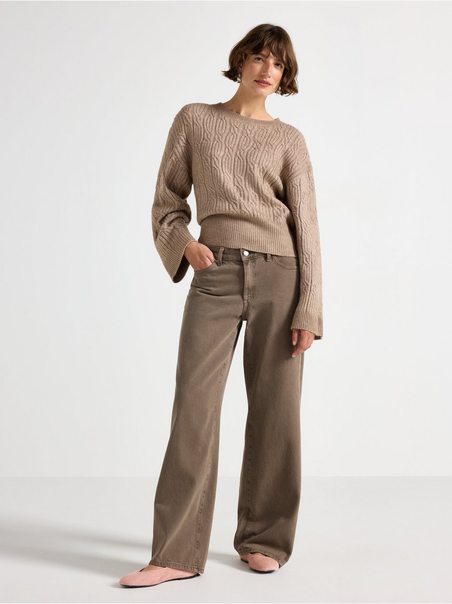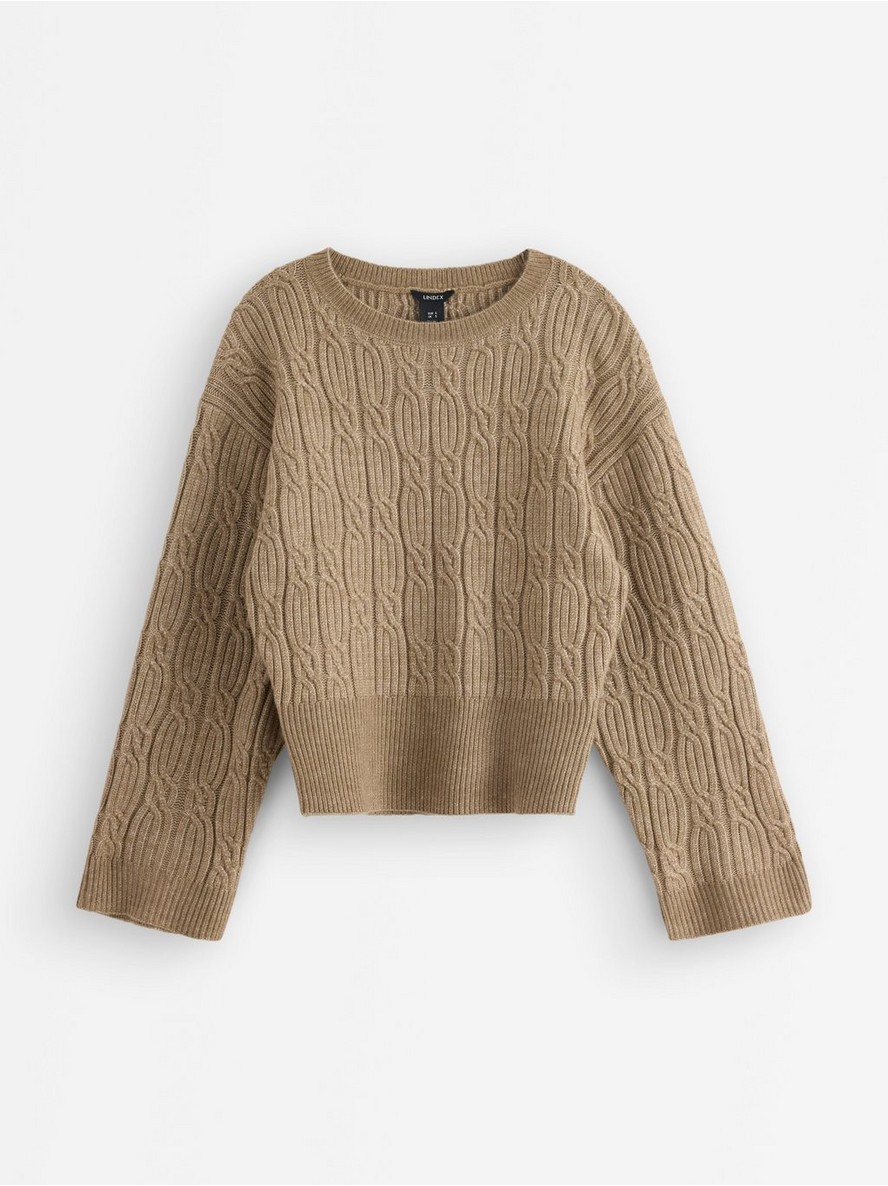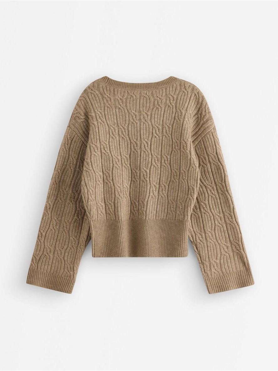 Pleteni džemper sa uzorkom i širokim rukavima.