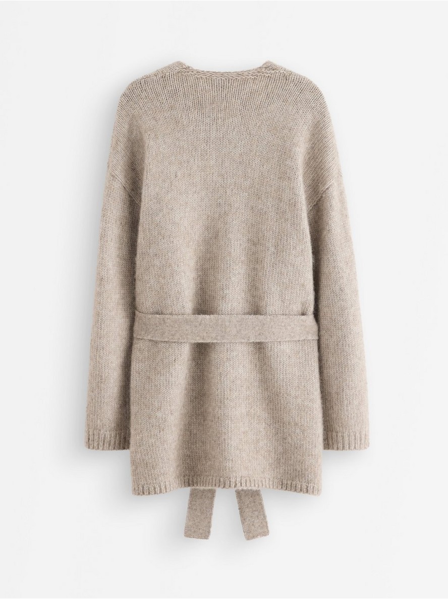 Mekan preklopni kardigan sa pojasom za vezivanje.